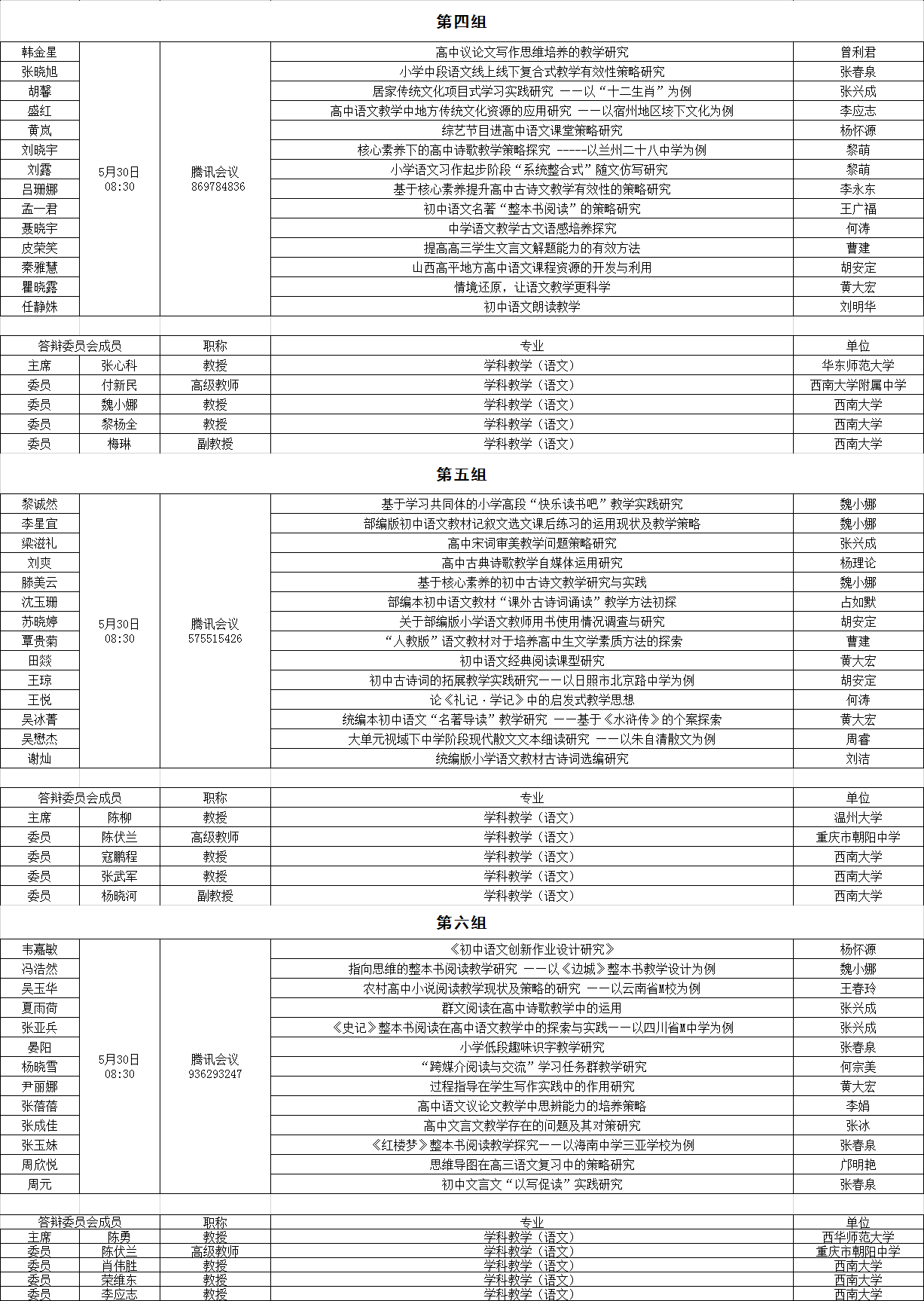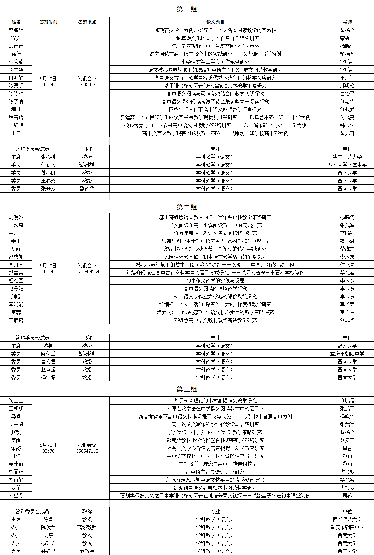 西南大学76net必赢官网公费师范教育硕士2021年春季学期学位论文答辩安排公告