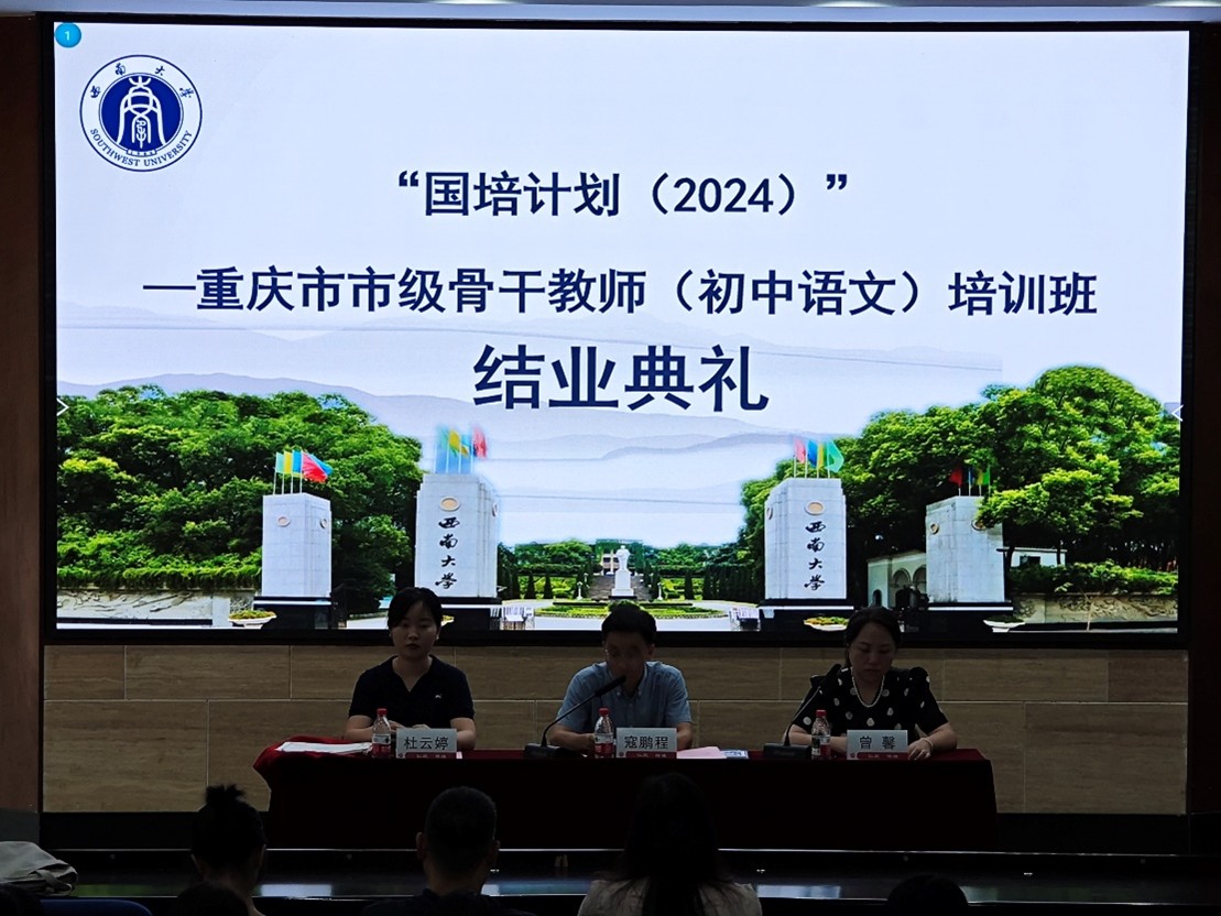 7月8日,76net必赢官网举行“国培计划(2024)”——重庆市市级骨干教师培养对象培训(第二年)结业典礼。76net必赢官网副院长寇鹏程,培训项目负责人曾馨,培训班班主任杜云婷出席典礼。结业典礼由寇鹏程副院长主持。来自重庆市市级骨干教师培训项目的全体学员参加了典礼。