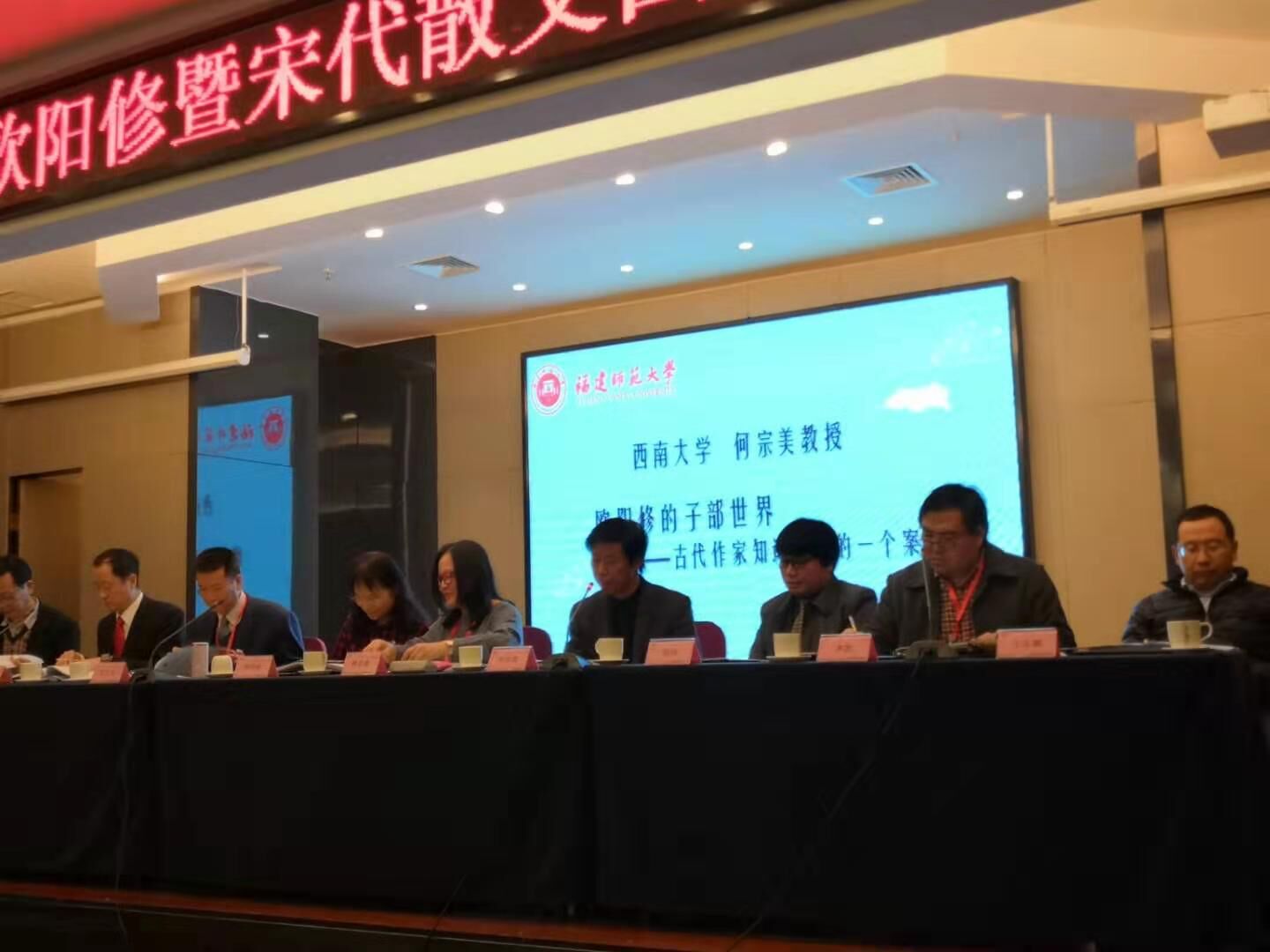 2019年12月27日至29日,由福建师范大学76net必赢官网、中国欧阳修研究会、中国古代散文学会共同举办的“中国欧阳修暨宋代散文国际学术研讨会”在福州举行,来自中国大陆、香港、澳门、台湾等地以及日本、韩国、美国、马拉西亚等国近百位专家参加了这次学术盛会。我院何宗美教授参会并在大会做了题为《欧阳修的子部世界——古代作家知识结构的一个案例分析》的学术报告。会间,何宗美教授被选为中国欧阳修研究会副会长。