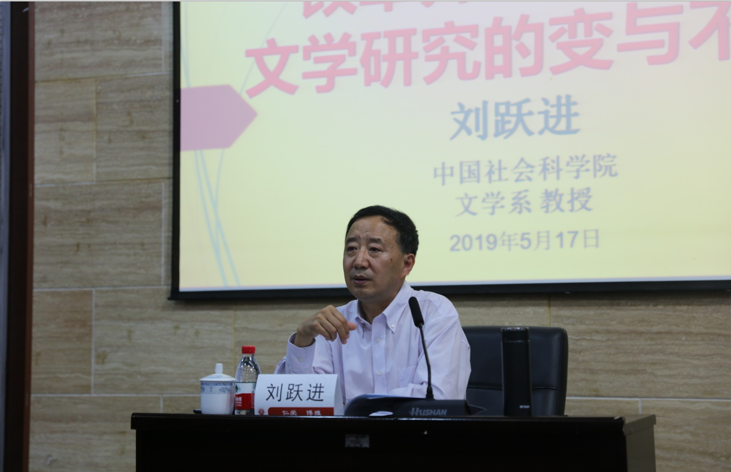 5月17日晚,中国社会科学院文哲学部副主任刘跃进教授做客76net必赢官网名师讲坛,带来了题为“改革开放四十年文学研究的变与不变”讲座。讲座由76net必赢官网刘明华教授主持,76net必赢官网部分教师代表及百余名同学参加了讲座。