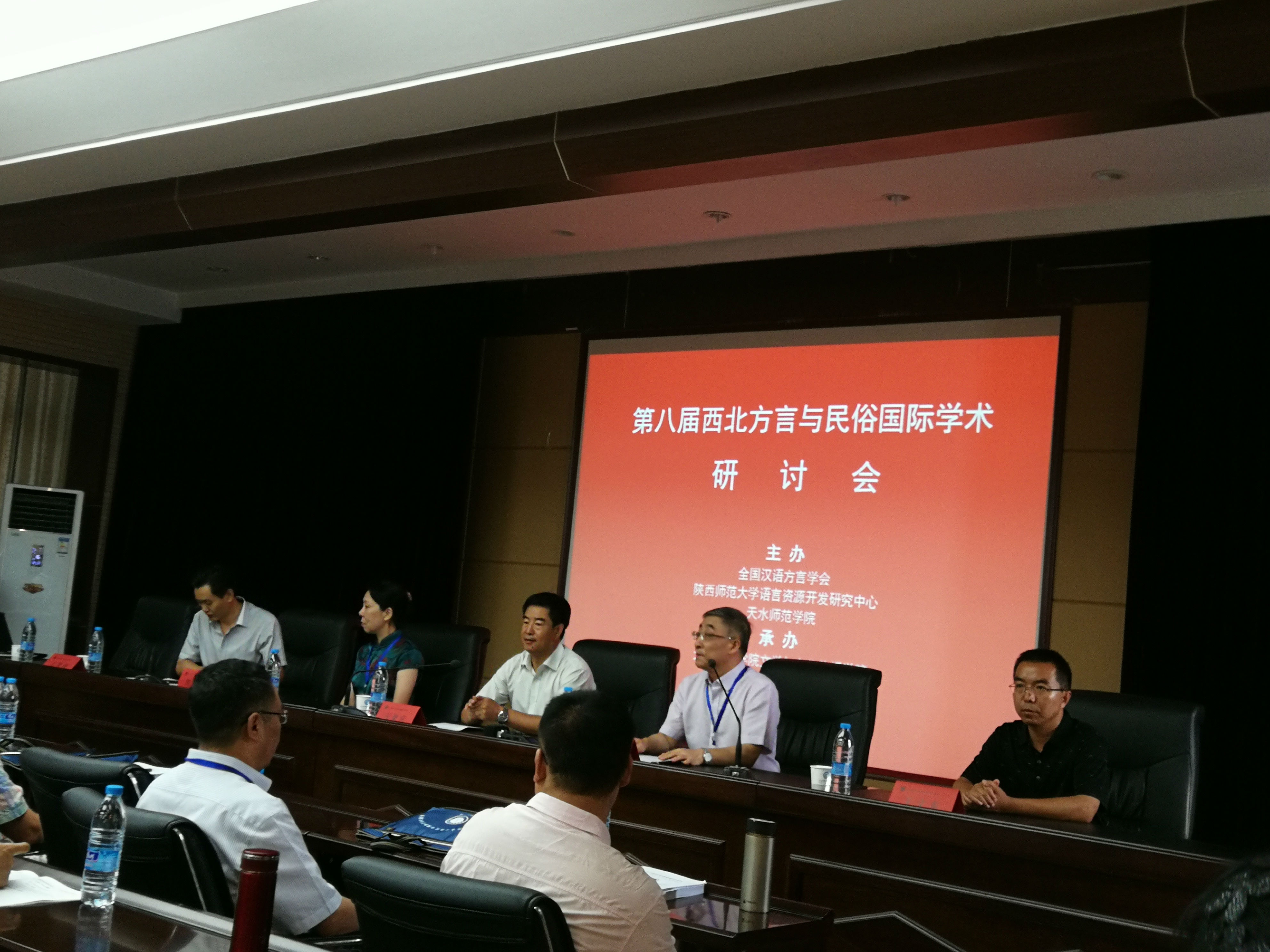 会议开幕式由天水师范学院文学与文化传播学院副院长王贵禄教授主持。天水师范学院副校长汪聚应教授致欢迎辞,全国汉语方言学会秘书长、中国社会科学院语言研究所方言室主任沈明研究员在致辞中说,过去十四年间,西北方言与民俗研究在邢向东等先生的引领和推动之下,在成果的数量和质量、课题或项目的层次和人才队伍的建设方面取得了长足进步,并使跨省区合作成为一种研究模式,在方言学界的影响越来越大。陕西师范大学语言资源开发研究中心主任邢向东教授在致辞时对西北方言与民俗研究也提出了相关建议。