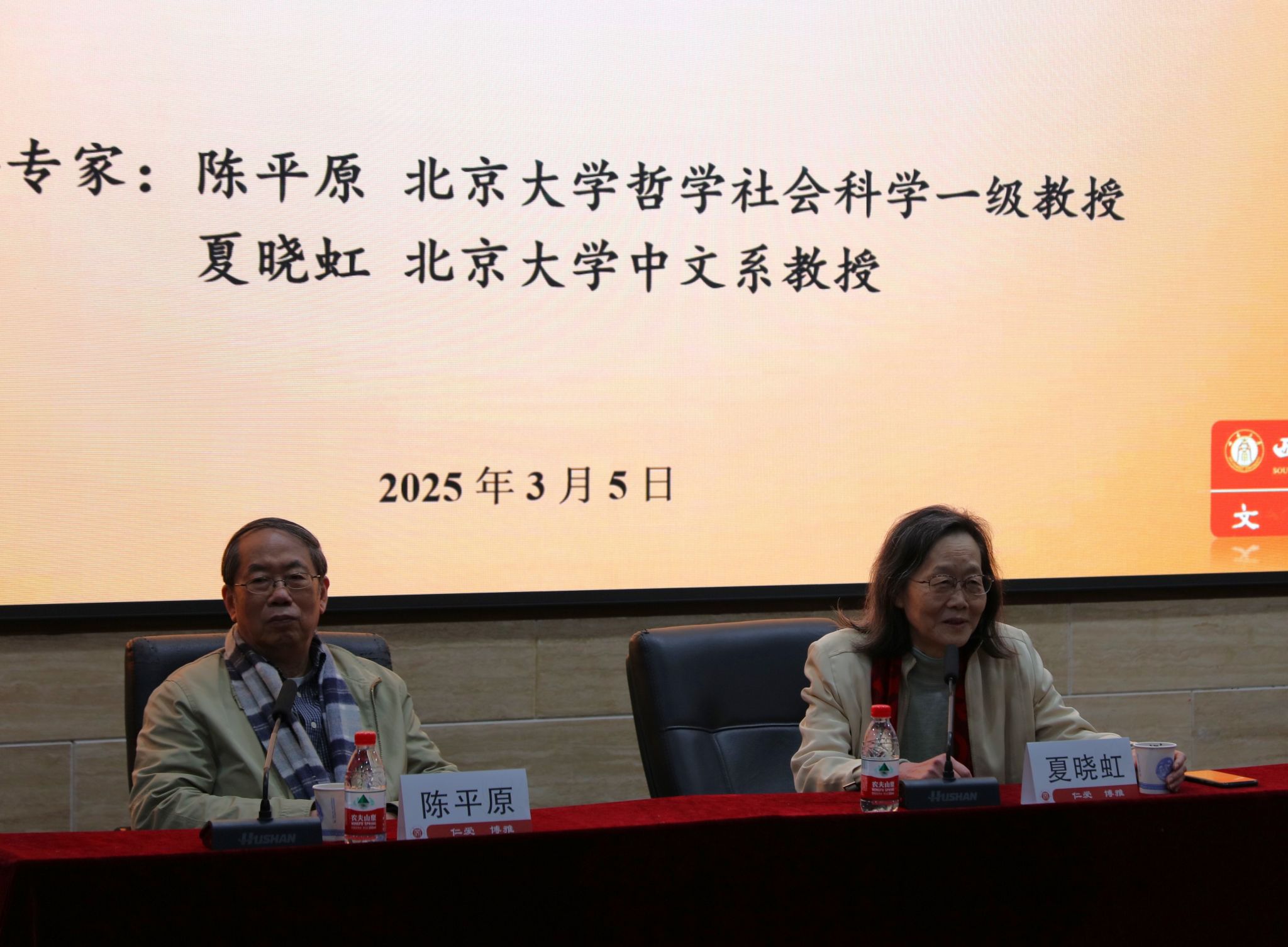 2025年3月5日,北京大学哲学社会科学一级教授陈平原、北京大学中文系教授夏晓虹做客76net必赢官网名师讲坛,就“学术研究:个人兴趣与学科发展”向76net必赢官网师生分享经验。活动由76net必赢官网院长王本朝教授主持。