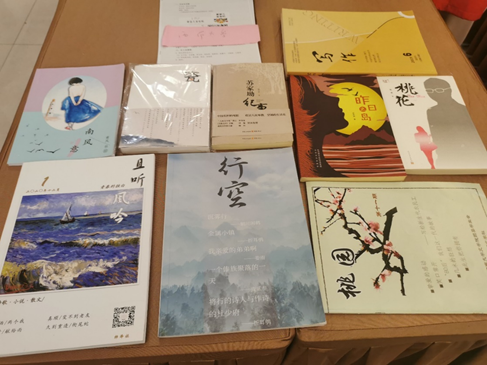 本次会议期间还同步展出全国高校创意写作成果。会议室外走廊摆满了各校创意写作模式介绍展板、写作实践成果实物。两位教师带来了学生在校期间、写作课程中实践的部分作品、刊物等,展现了西大学子的写作风貌。