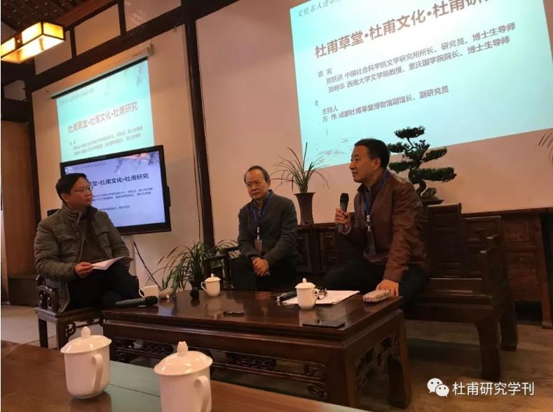 2017年12月28日—31日,“杜甫与传统文化前沿论坛暨2017年度《杜甫研究学刊》作者座谈会”在成都杜甫草堂博物馆举行。整个论坛分为两大板块,分别是“文化名人进草堂系列学术讲座•名家面对面”与“《杜甫研究学刊》作者座谈会”。