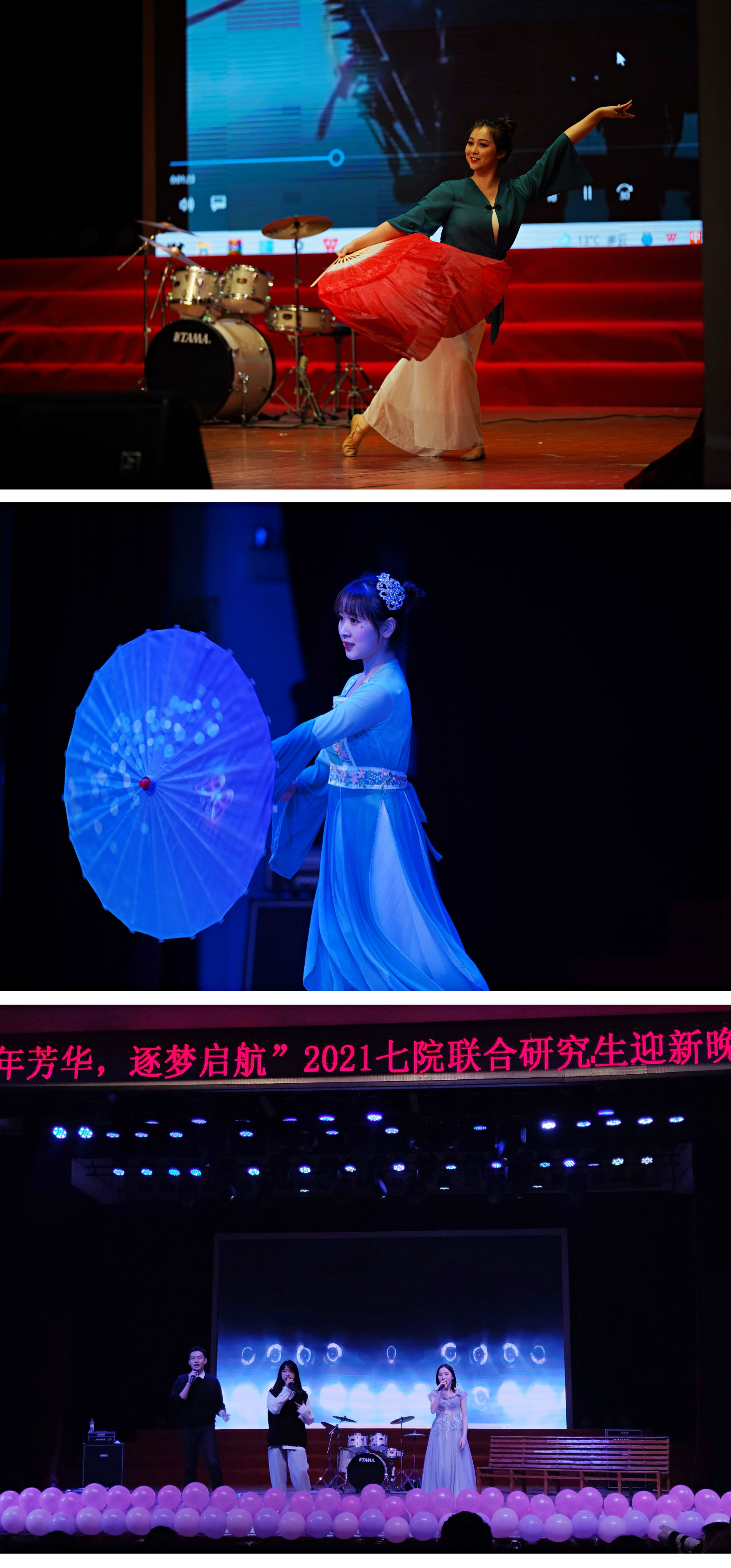 晚会上,76net必赢官网研究生共主演、参演六项节目。舞蹈《烟雨初见》以唯美的古典舞展现了年轻男女间朦胧而又浪漫的感情;乐队表演《你曾是红河谷少年》为到场来宾准备了惊喜——陈玥副书记作为表演嘉宾,上台演唱歌曲《你曾是少年》,动情的歌声让现场气氛迅速升温,台下观众纷纷举起灯牌应援;歌曲串烧《云上的歌》则以激昂的曲调唱出了年轻学子不畏挫折,追求心中炙热梦想的勇气……