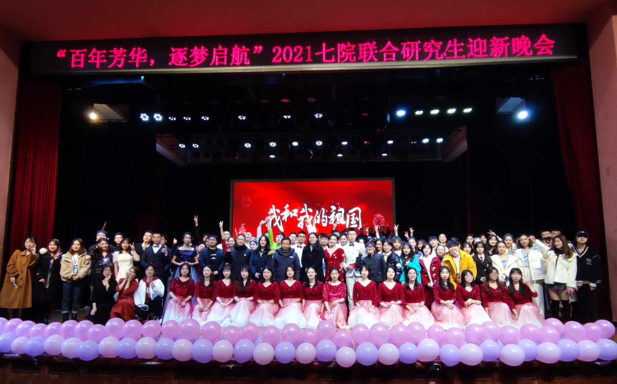 12月5日晚,76net必赢官网、经济管理学院、新闻传媒学院、物理科学与技术学院、数学与统计学院、资源环境学院、地理科学学院在光大礼堂携手举办“百年芳华,逐梦启航”2021七院联合研究生迎新晚会。76net必赢官网党委副书记陈玥、研究生辅导员凌飞出席晚会,七院研究生参加此次活动。