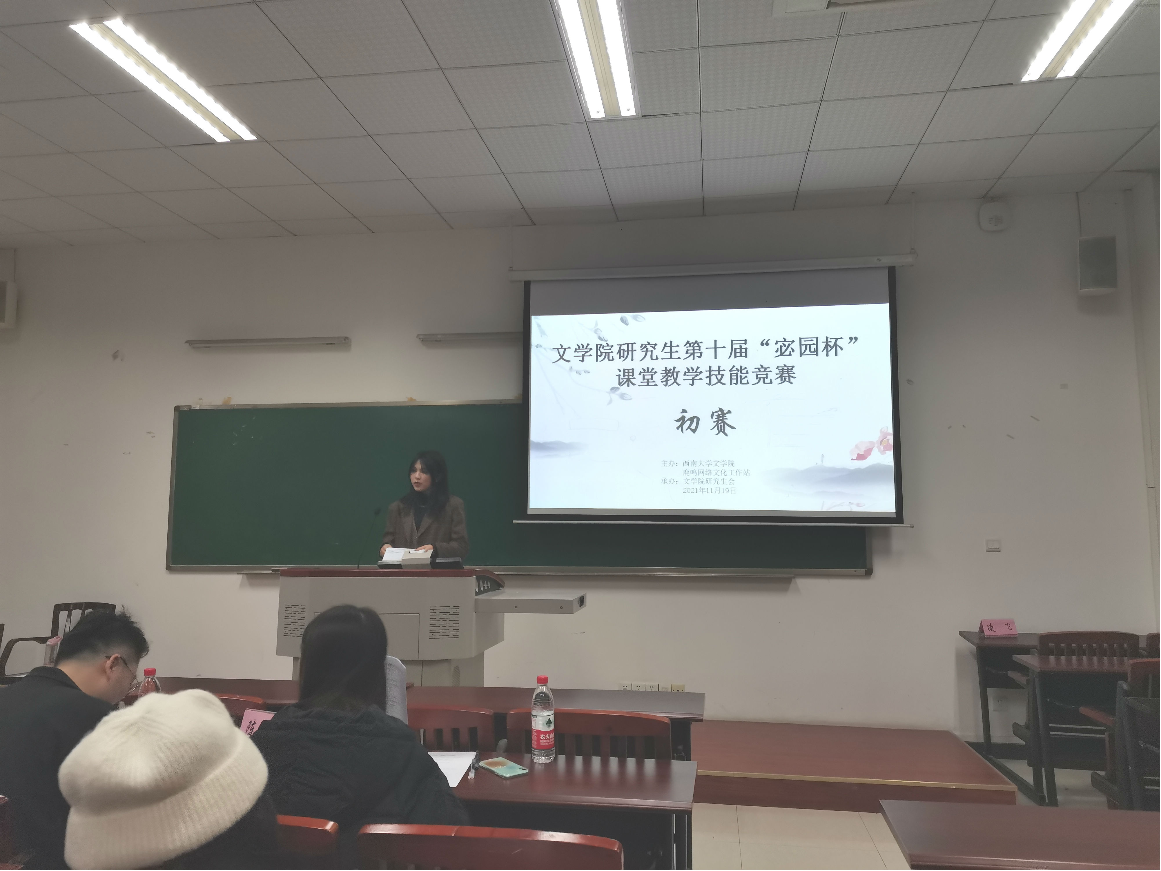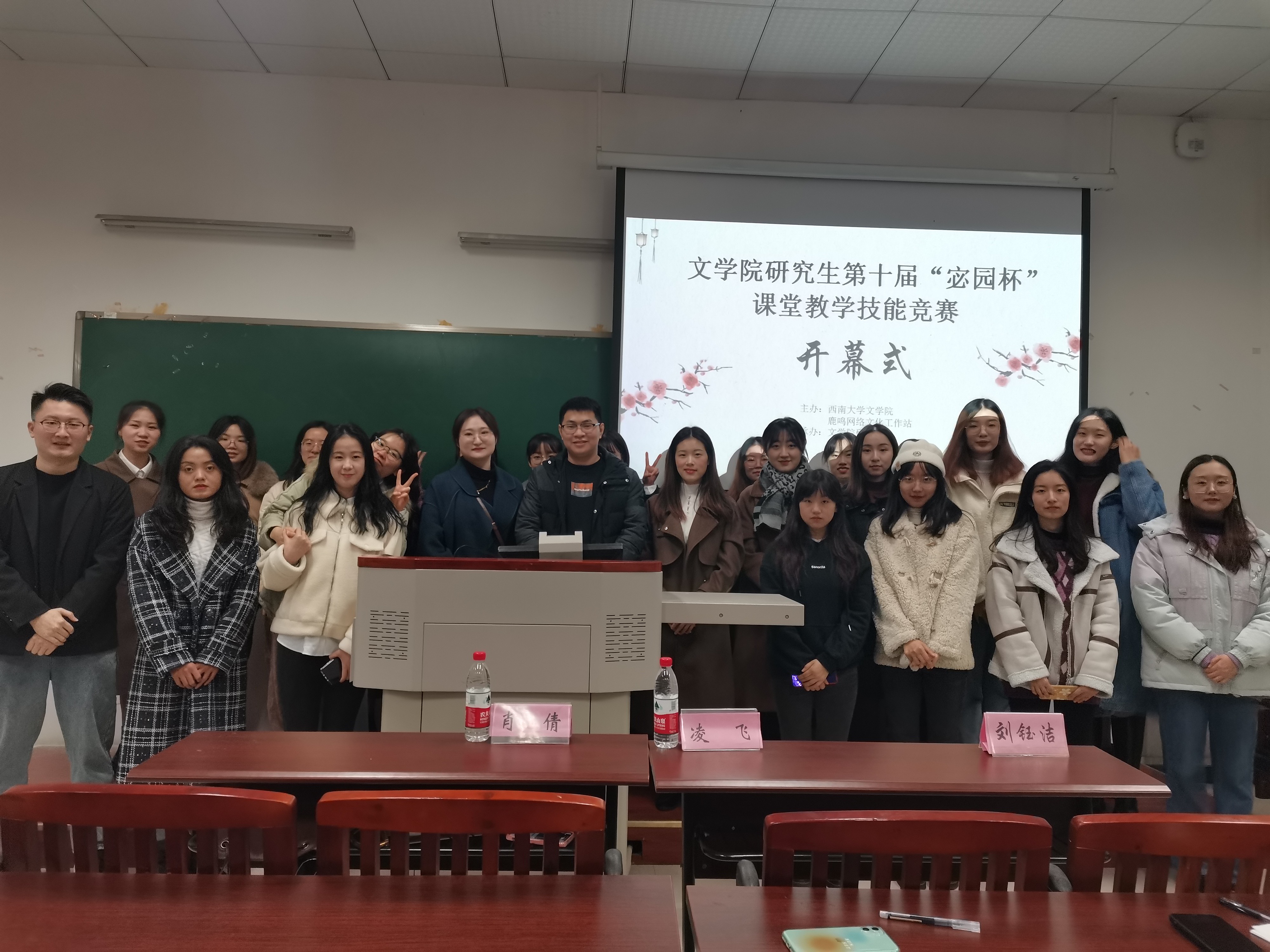 11月19日下午,由西南大学76net必赢官网、鹿鸣网络文化工作站主办的第十届“宓园杯”研究生课堂教学技能竞赛开幕式暨初赛在76net必赢官网举行。76net必赢官网研究生辅导员凌飞出席本次活动。活动由2021级现当代文学专业陈晓桐主持,往届优秀选手和研究生会主席团共同担任评委。共有51名选手报名参赛。
