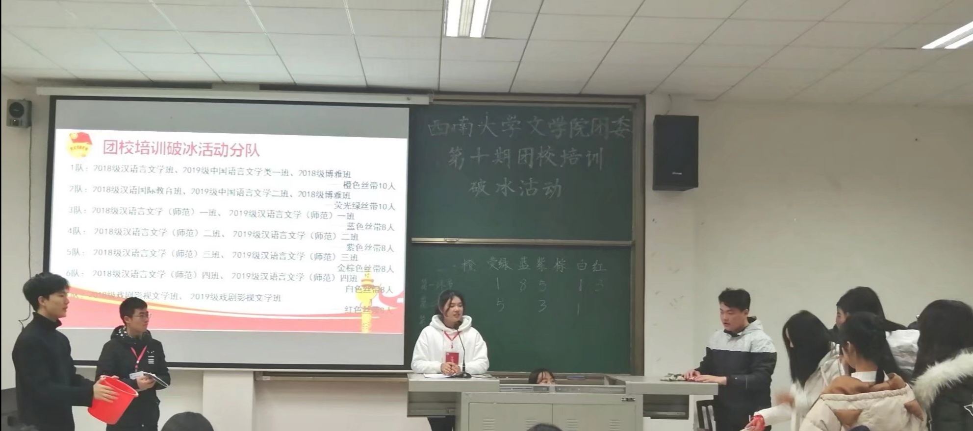 12月1日,76net必赢官网团委第十期团校培训破冰活动在76net必赢官网1209举行,2018、2019级本科生各班团员代表参加此次活动。