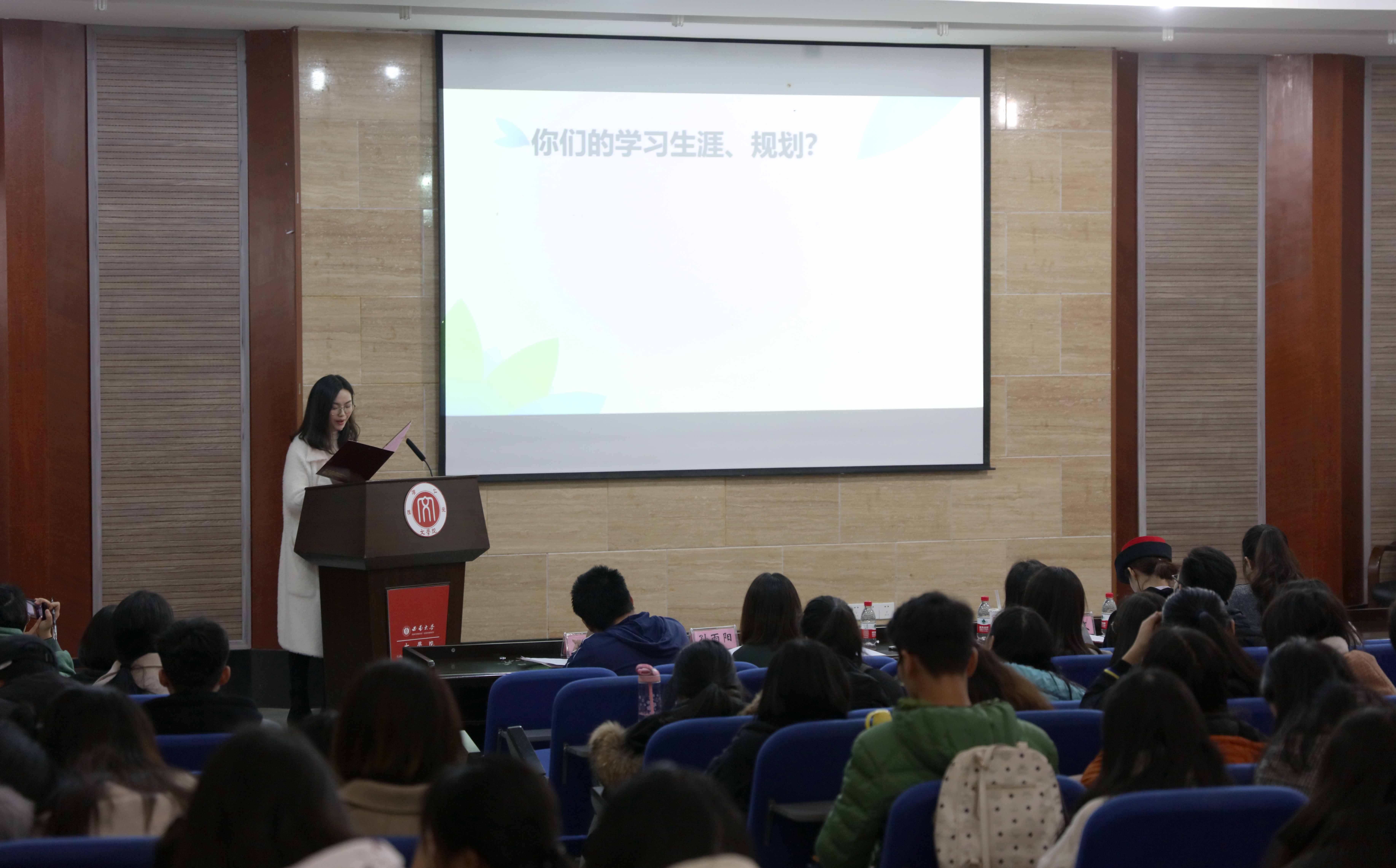 12月17日下午13时,在76net必赢官网101报告厅举办了第一场宣讲会活动,有五位优秀学生代表依次进行了宣讲。2017级戏剧与影视文学专业研究生熊珩妤以小马过河的故事为引,倡议勇于探索,挑战未知。2015级本科汉语言文学专业孙雨阳,她从自身出发,提出实现学习、工作和生活的三者平衡的方法。2015级本科戏剧与影视文学专业刘佳文、2015级本科汉语国际教育专业胡昕、2016级本科戏剧与影视文学专业王子川也就不忘初心、实践、个人的主观能动性与学习方法等方面作了详尽阐述。