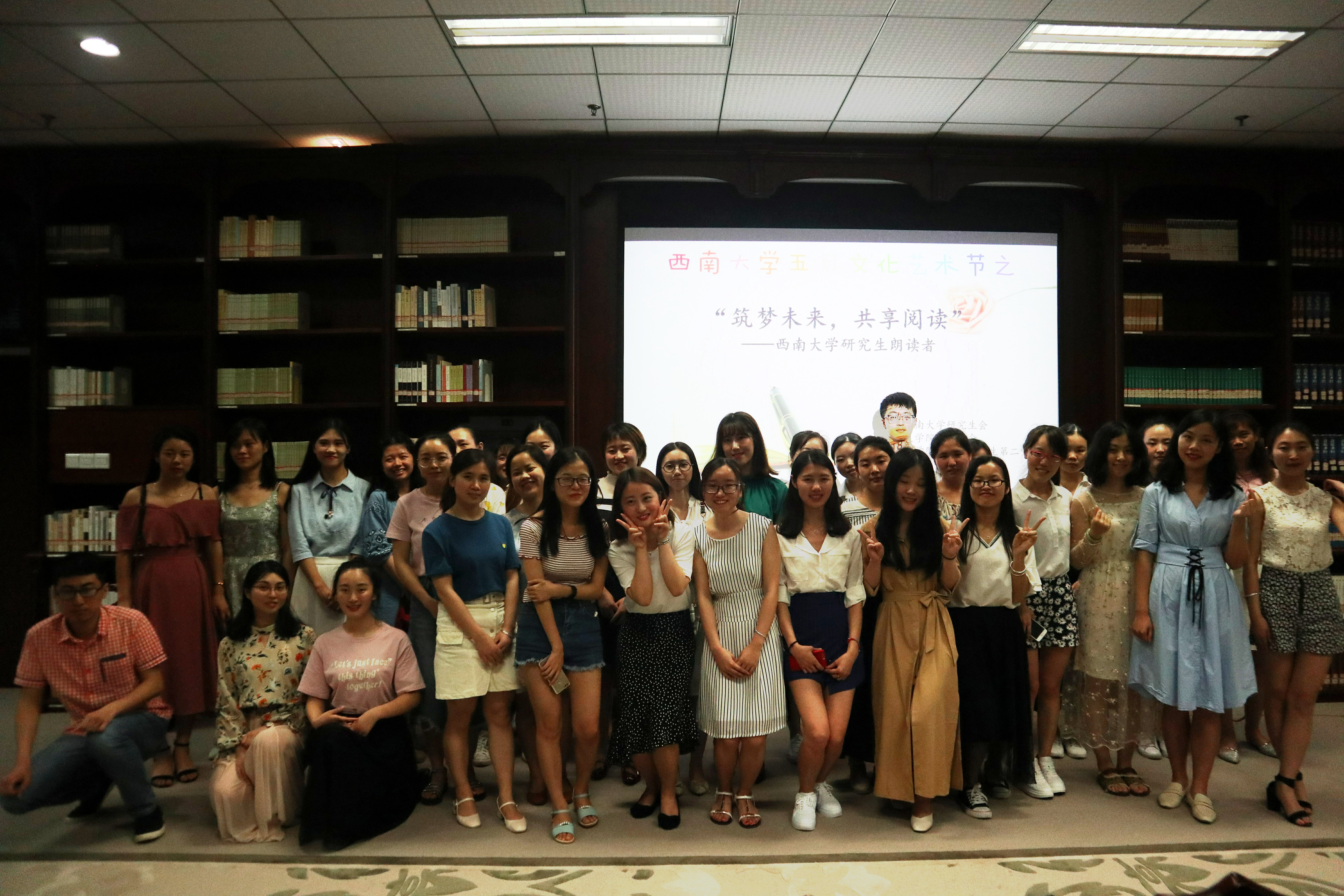 5月16日晚7点,西南大学五月文化艺术节之“筑梦未来,共享阅读”研究生朗读者活动决赛在中心图书馆九楼如期举行。经过前期初赛的选拔,最终有9名同学进入到最终决赛环节。在本次活动中,除现场设置50多个观众席位外,还利用微博平台对活动进行直播,并通过现场观众投票的方式决出胜负。