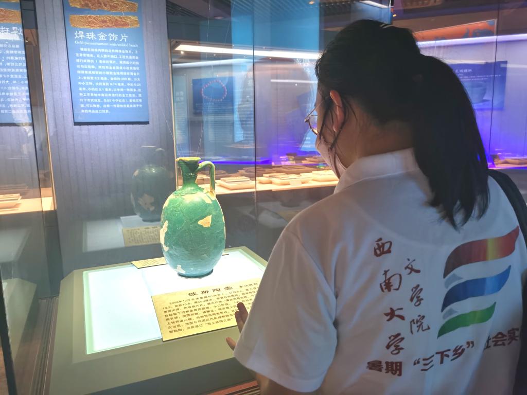 实践团前往广西合浦县汉闾不夜城,体验当地民族团结的和谐氛围;通过参观合浦汉代文化博物馆,探寻中国海上丝绸之路的起源。实践团成员吕新燕在参观后感慨道:“汉代海上交通的发达程度令人赞叹不已,这些成果离不开南下的北方民众带来的先进中原技术以及客家人和本地原住民的通力协作。汉族和壮族的融合发展,才创造了现在合浦民族团结和谐的社会氛围。”