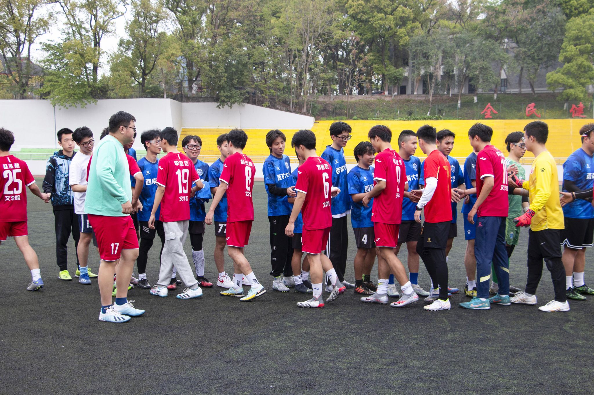 3月31日,76net必赢官网与经济管理学院学生足球友谊赛在第二运动场拉开帷幕。76net必赢官网学生工作办公室主任 团委书记曾馨老师、2022级本科生辅导员唐利平老师到场观赛。前国家足球队季铭义老师指导本次比赛。