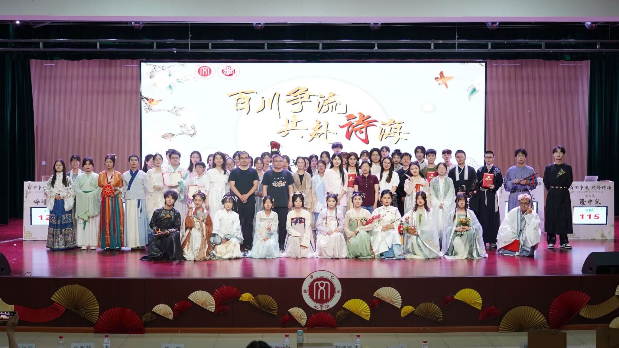 经过激烈角逐,文思哲队斩获一等奖,针锋相队荣获二等奖,玢雪泞吏队荣获三等奖和最高人气奖,其余五支队伍获优秀奖。本次诗词大会掀起了“诗词热潮”,增强了西大学子的文化底蕴与文学素养,搭建了古诗词学习交流平台,营造了学诗爱诗的校园文化氛围,极大地丰富了同学们的校园文化生活。