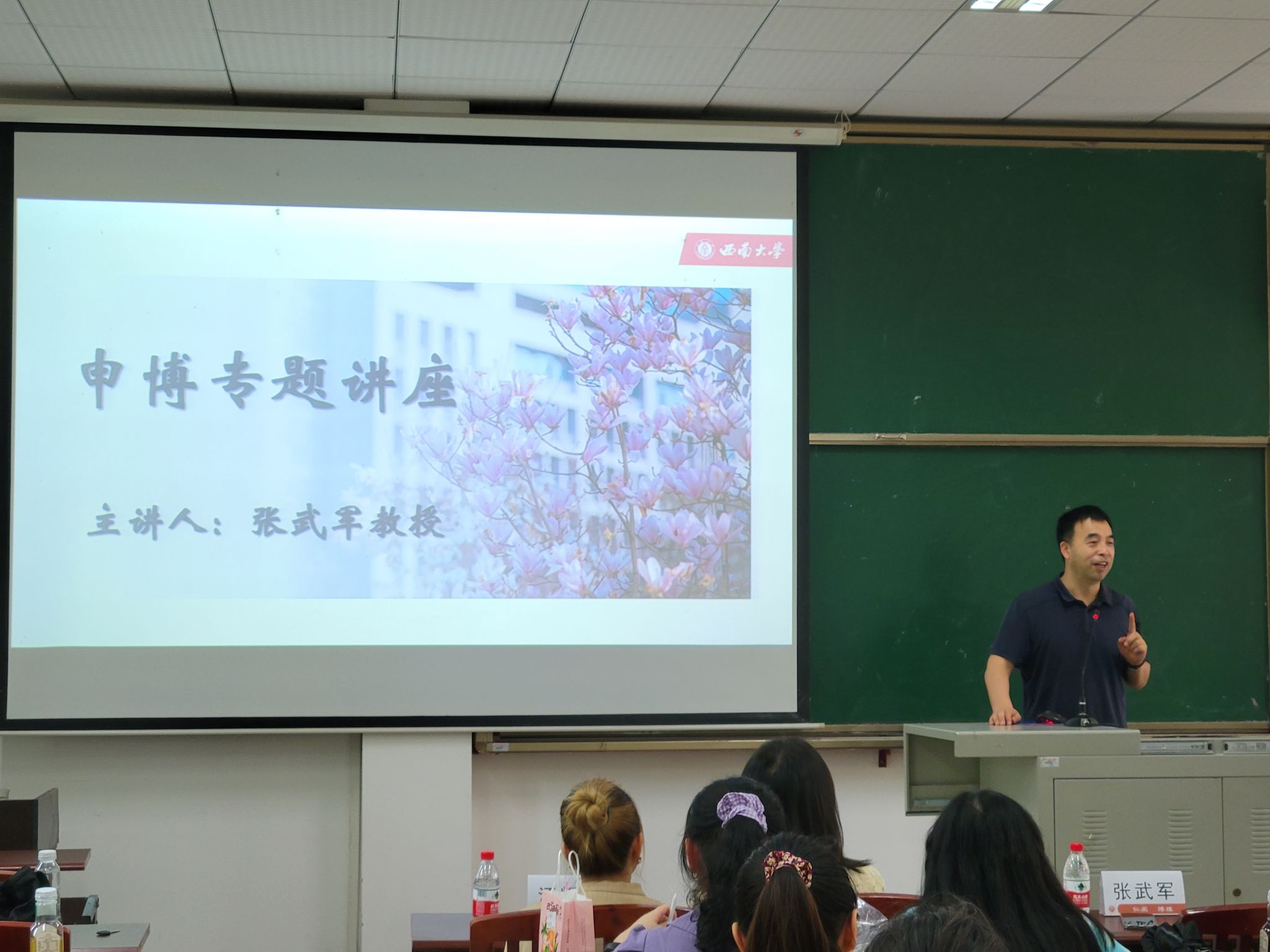 张武军教授以导师自身的视角,分别从“论文选题”“院校及导师抉择”“自荐信写作”等方面讲解了申博相关的内容。他指出,有意攻读博士的研究生需尽早做好规划,提前深入了解报考院校的政策和导师研究方向,并以诚恳态度对待自荐信,杜绝格式化编辑。另外,在答疑环节中,就有关研究兴趣和选题方向的问题,他认为学科顶级刊物中的文章是很好的参考,值得学生学习。