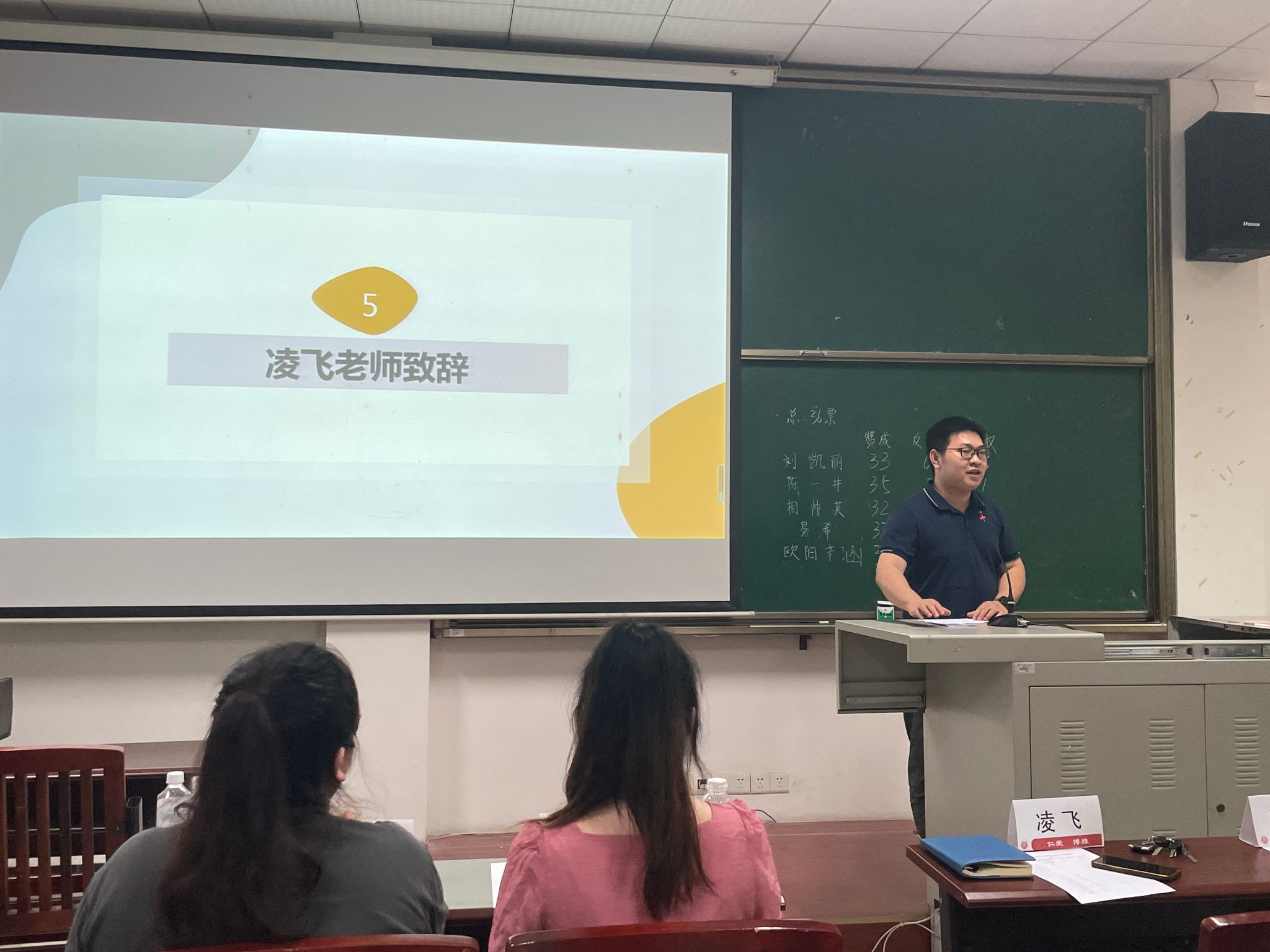 大会第五项,研究生会指导老师凌飞致辞。他对筹备本次会议的全体工作人员以及所有学生组织的辛勤付出与工作成果予以肯定,并对新一届的主席团成员表达祝贺和期望。他希望大家继续以新气魄、新形象、新作风把握机遇、开拓进取,为服务广大同学成长成才和学院的健康发展作出应有的贡献。