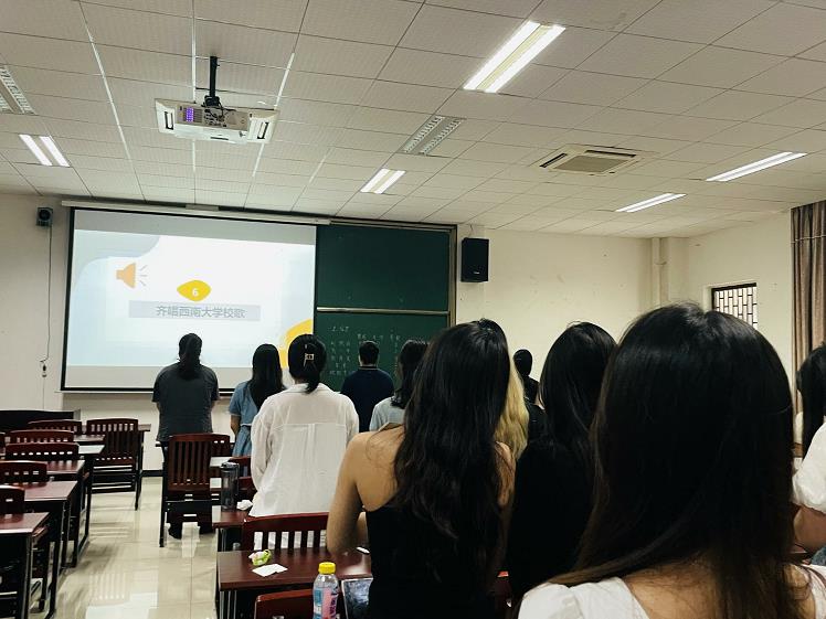 大会第六项,参会人员齐唱西南大学校歌。