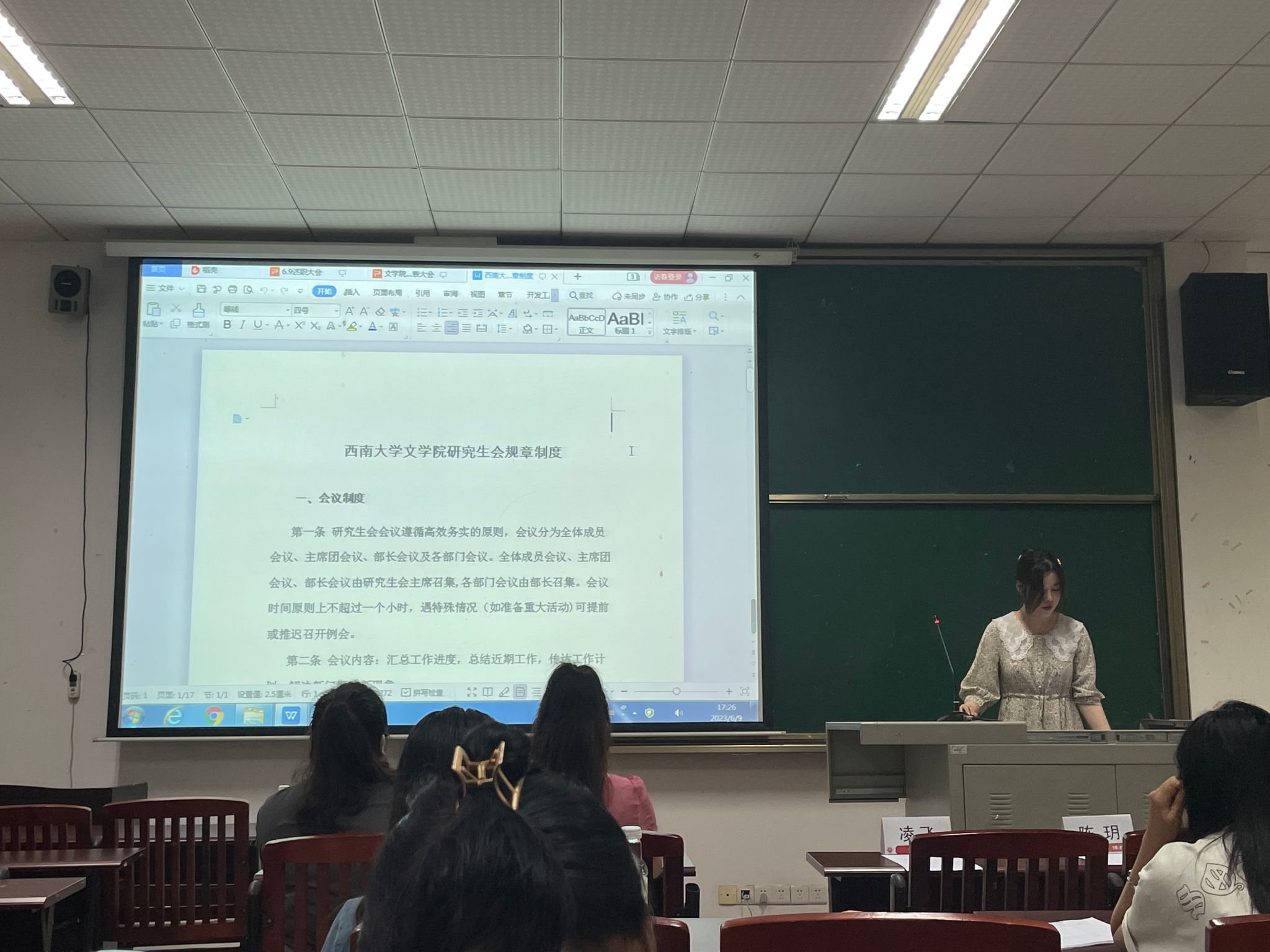 大会第三项,全体参会人员审议并通过了《西南大学76net必赢官网研究生会规章制度》。大会号召研会成员要坚持“全心全意为同学们服务”的宗旨,各部门间要紧密团结、同心同德,为学院的建设发展凝聚才华智慧。