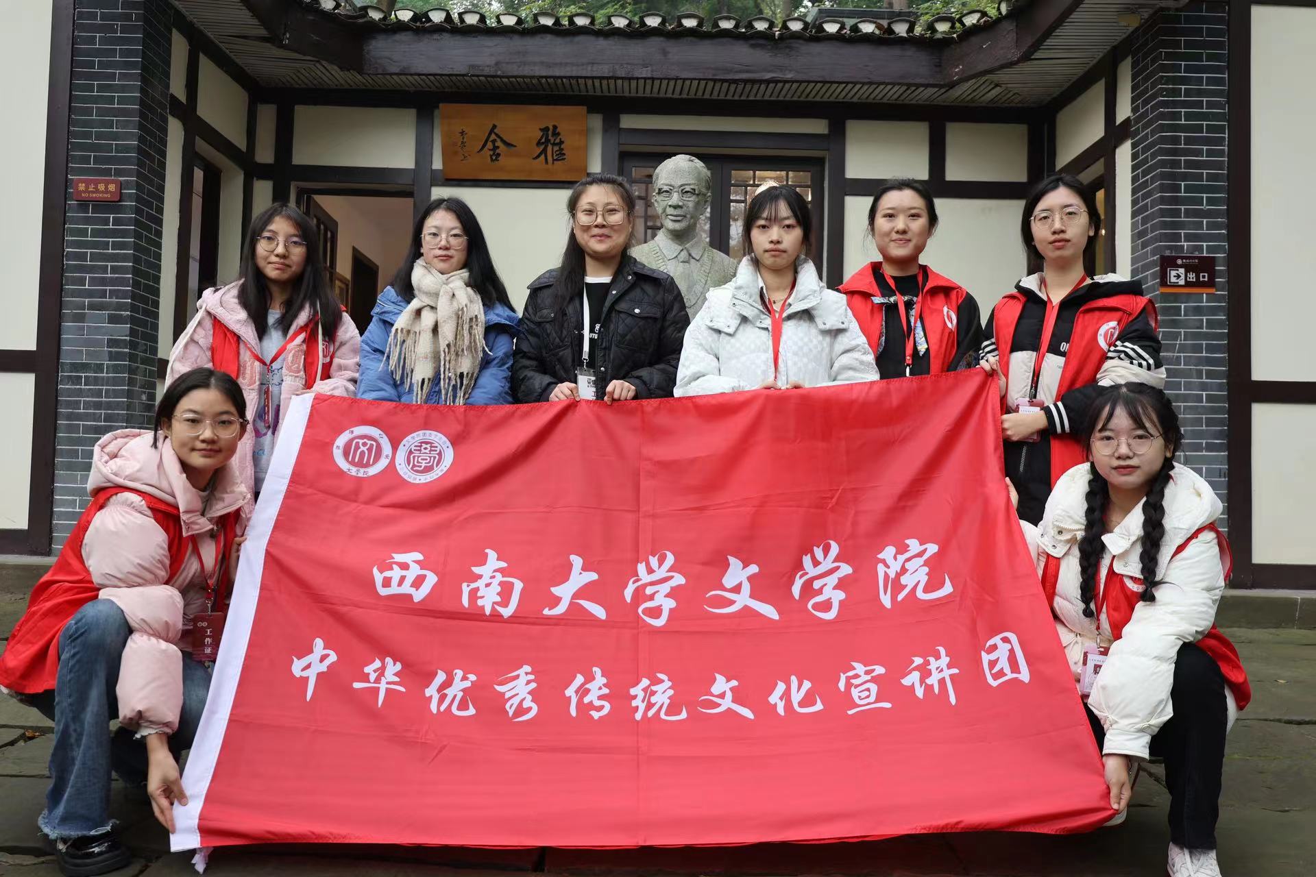 12月9日,76net必赢官网在梁实秋纪念馆举办“千人一面戴,彩绣锣鼓起”传统文化宣讲会,宣讲团成员及北碚部分小学生参与本次宣讲会。