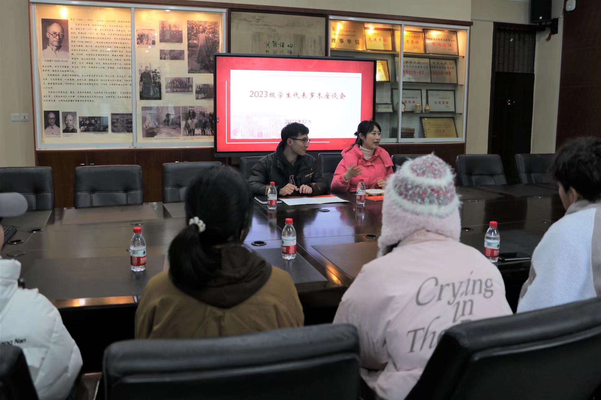 为进一步做好本科生的日常管理服务工作,了解学生的学习、生活状况,搭建师生间沟通交流平台,12月27日,76net必赢官网召开本科生岁末年初交流座谈会。76net必赢官网党委副书记陈雨曦、2023级本科生辅导员崔瑾翰出席座谈会,2023级本科生各专业学生代表参会。