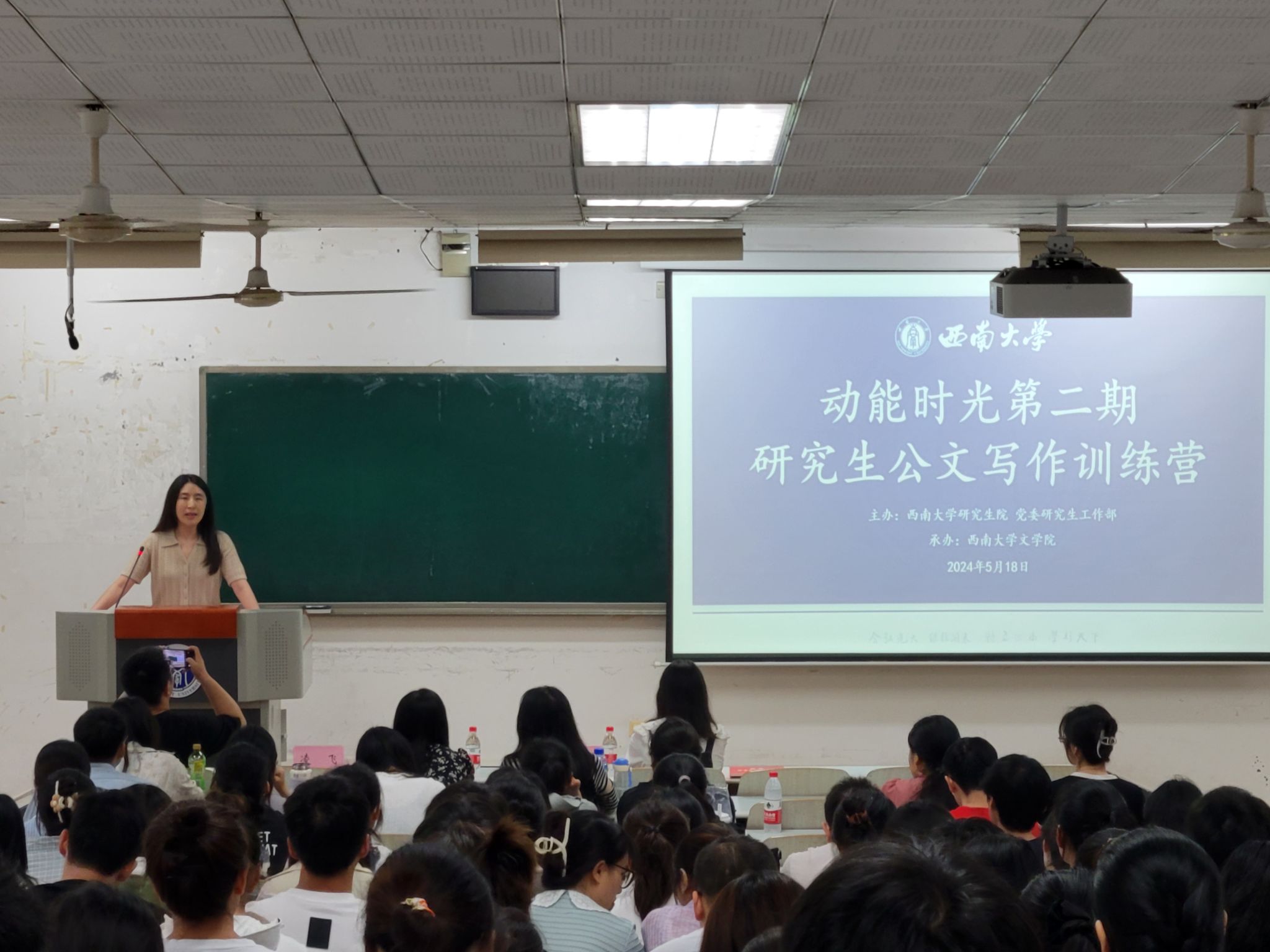 5月18日下午,由西南大学研究生院 党委研究生工作部主办,76net必赢官网承办的“动能时光第二期--研究生公文写作训练营”开营仪式暨第一讲课程举办。76net必赢官网党委副书记 纪委书记陈玥、写作与语文教育教研室主任李金凤副教授、研究生辅导员凌飞和往届优秀营员柯菲出席开营仪式,活动由76net必赢官网研究生会成员王静雅主持。李金凤副教授为全体营员开讲第一课“党政机关公文写作(一)——报请类、商洽类、纪要类等公文”。
