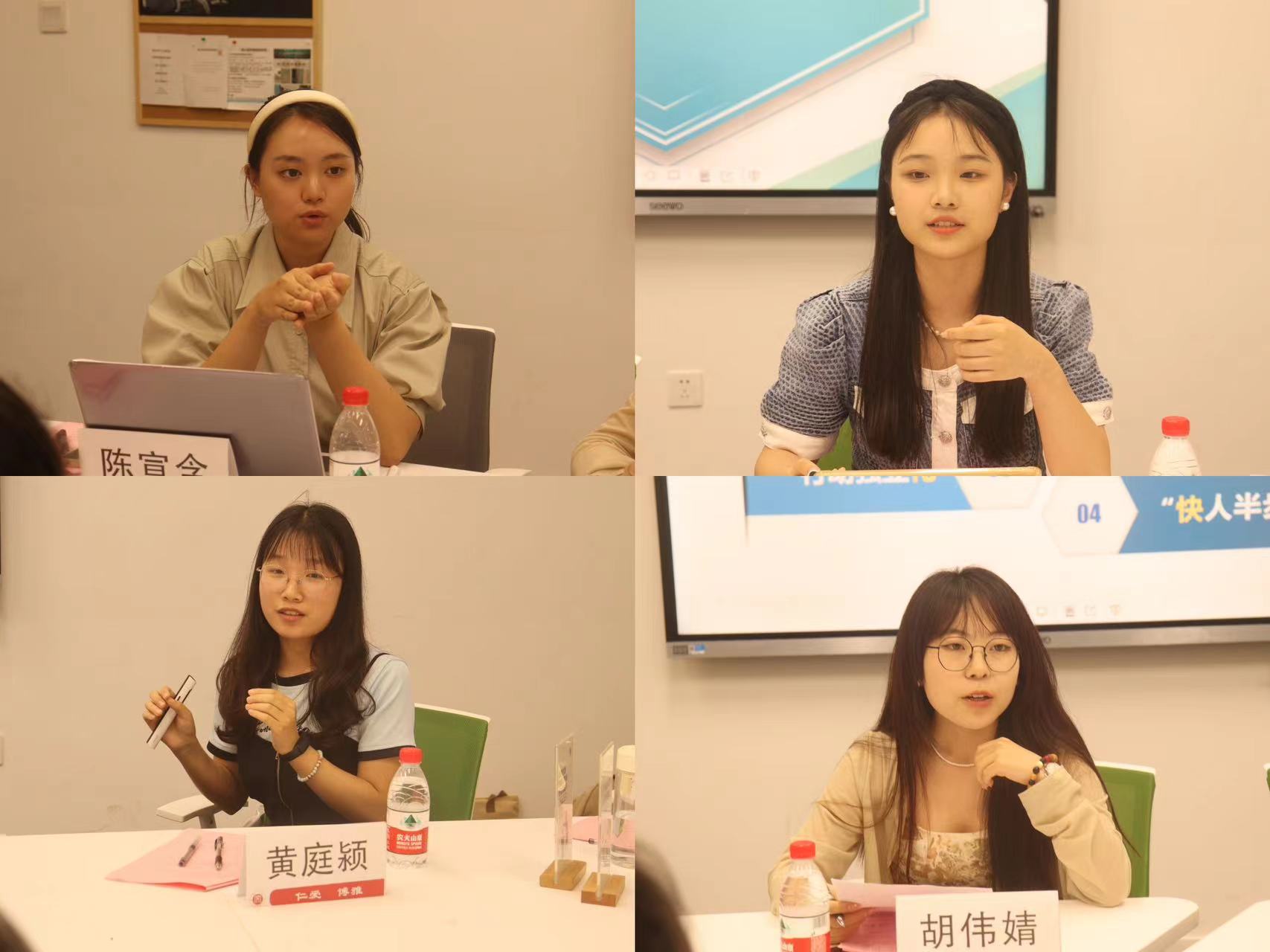 活动中,参会同学在进行了简单的自我介绍后,根据未来规划提出了自己的一些困惑,随后,四位嘉宾针对同学们的问题依次做出解答。胡伟婧同学围绕“时间协调”展开分享,她指出学习学业上要做到“三化一快”——抓住碎片化、场所固定化、行动独立化与快人半步,学生工作上要做到“双量一态”——减少数量、注重质量并且态度认真。针对大家关心的“考研与保研”问题,徐婉婷同学以个人保研的经历为例,带领同学们进行了保研政策的分析以及保研流程的概览,着重强调了准备保研时要做到“明确目标、落实计划、高效坚持”,不放松成绩提升的同时更要锻炼自己的专业能力。关于参加竞赛的问题,陈宣含同学给大家介绍了“大创”的基本信息,并在竞赛选题与团队组建上分享了自己的参赛经验,她建议同学们在学习生活中要注意关注前沿技术的革新及其对自己所学专业的影响。黄庭颍同学则从“专业学习”方面展开了详细分享,她鼓励同学们要寻找自己的一套学习方法,把握课堂效率的同时注重课下的复习与扩展,并尝试自己整理复习资料。同时,她也强调劳逸结合,“学得好”也要“玩得好”。最后,参会同学结合自己的疑惑与分享嘉宾进行了交流和讨论,进一步解决了自己在学习过程中遇到的问题。
