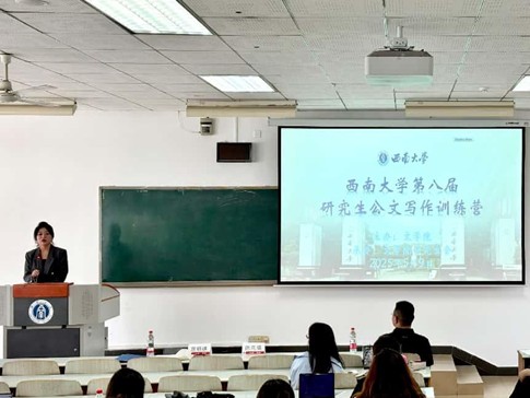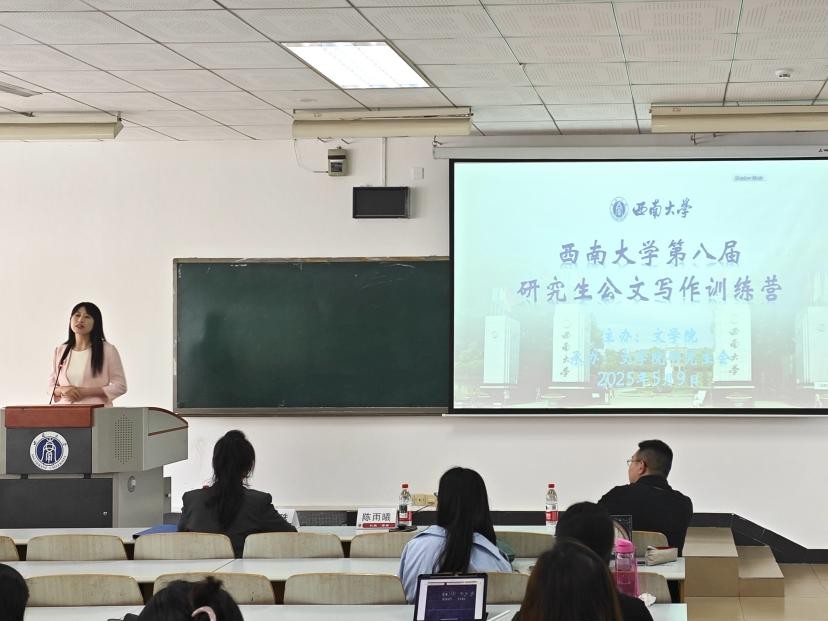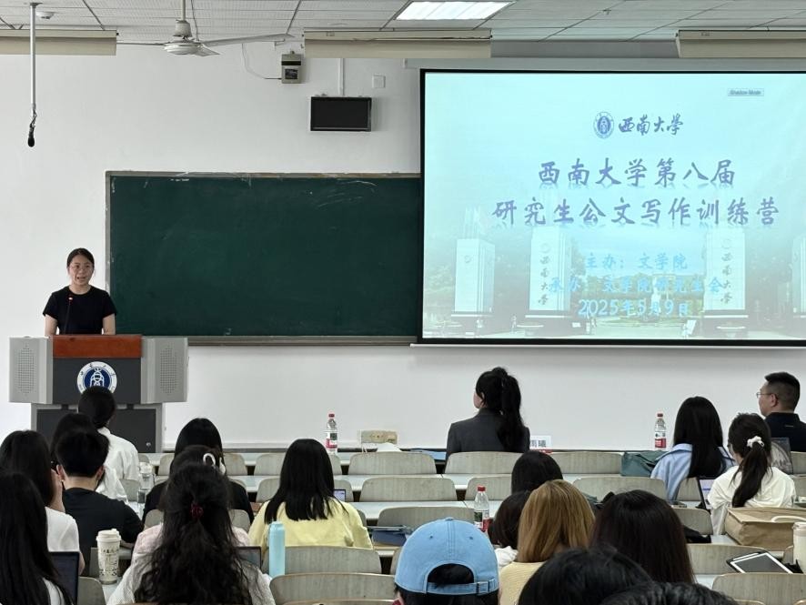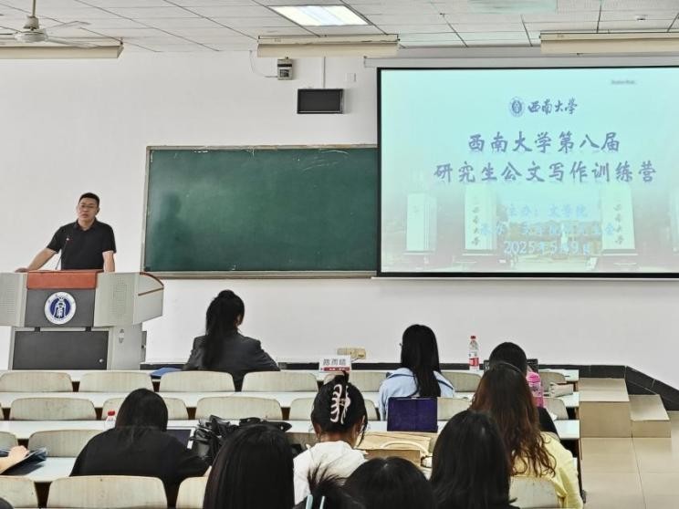5月9日下午,西南大学第八届研究生公文写作训练营开营仪式在10教601教室举行,活动由76net必赢官网研究生会成员沙海蓉主持。76net必赢官网党委副书记陈雨曦、76net必赢官网研究生辅导员凌飞、往届优秀营员代表宣明珠、本届学员代表张湘兰在开营仪式中依次发言。