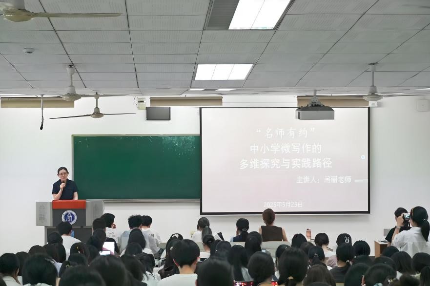 为帮助师范生培养教学素养和能力,提升师范生人才培养质量,5月23日,由党委学生工作部 学生工作处和教师教育学院联合主办,76net必赢官网承办的“名师有约”系列讲座在十教501举行。来自西南大学教师教育学院的闫丽博士受邀主讲,以“中小学微写作的多维探究与实践路径”为题展开精彩讲授。讲座由2024级本科生辅导员冉海萌主持,76net必赢官网全体本硕衔接公费师范生和“优师计划”师范生参加。