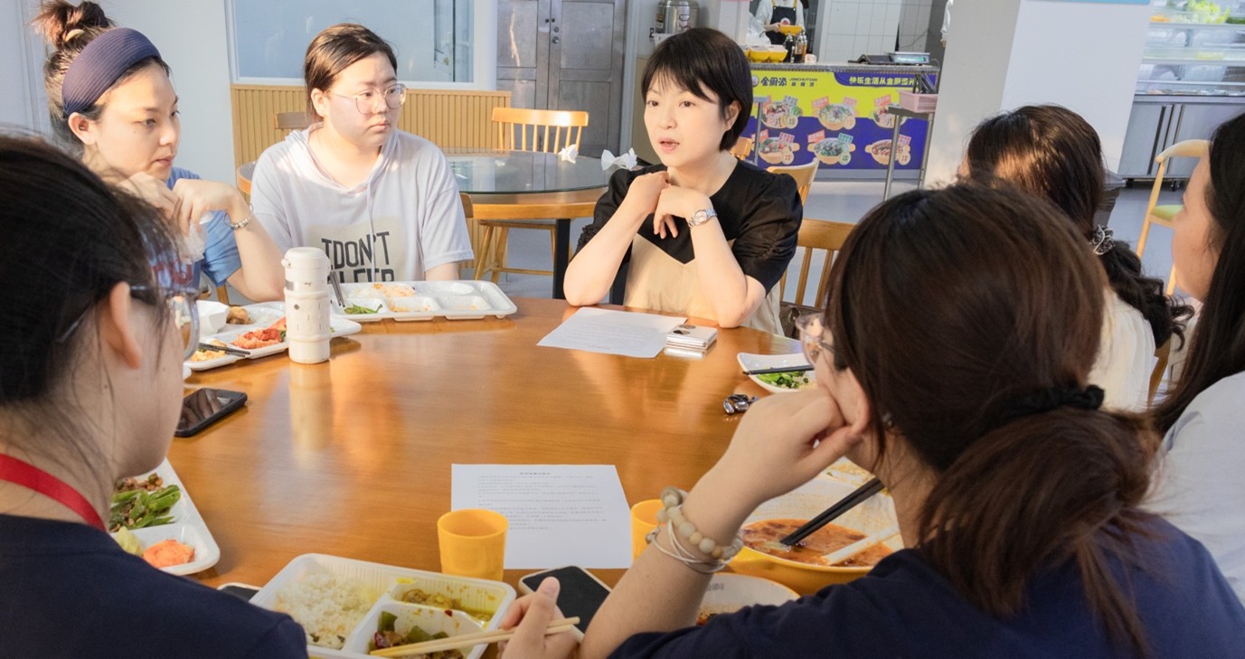 5月15日,76net必赢官网举办2025年第八次教授晚餐会。76net必赢官网张纯静老师受邀出席,与汉语言文学(师范)专业的7位同学围绕“如何克服写作障碍进行创意写作”这一话题展开讨论。