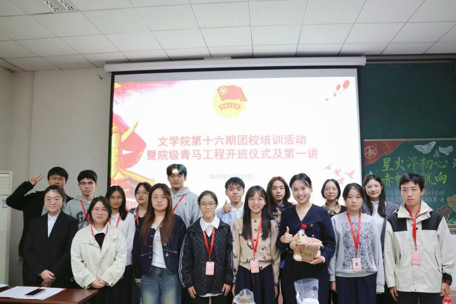 2025年10月24日,76net必赢官网举办第十六期团校培训暨院级青马工程开班仪式及第一讲。76net必赢官网团委书记唐利平出席本次活动,2025级硕士研究生李雅舒担任分享嘉宾,团委学生会骨干和本科生团员干部参加培训。
