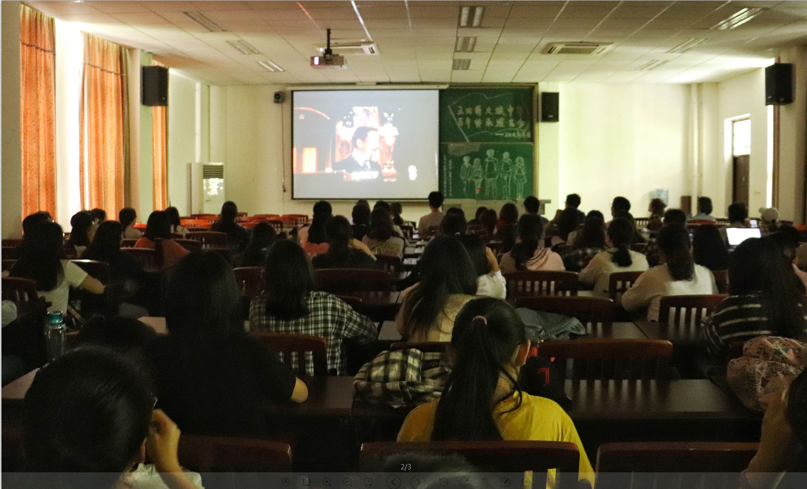 随后在中午12时40分,“五四薪火焕新华,百年传承照古今”五四主题电影展在76net必赢官网1209教室举行。电影展播放了电影《我的1919》,让同学们在五四运动一百周年之际,重温五四的历史,直面百年前的风潮。更好地理解五四精神,并从中获取力量,以响应习主席对青年的希望。同学们通过此次电影展感受到五四精神没有停在五四运动,而是随着时代的发展不断向前。希望本次活动能让爱国主义深植于同学们的心中,将五四精神真切地付诸实践。至此,本次76net必赢官网五四系列相关活动圆满结束。