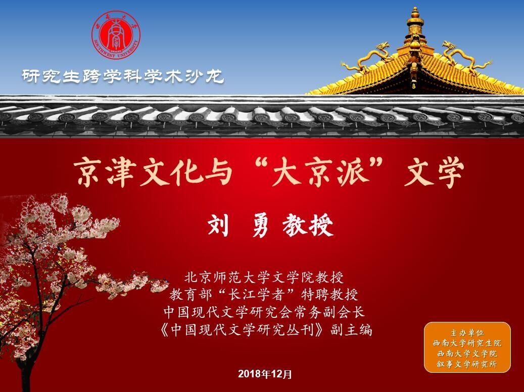 2018年12月20日上午9点,研究生跨学科学术沙龙“民族国家文学研究”第一场活动在76net必赢官网213会议室举行。本次沙龙主题为“京津文化与‘大京派’文学”,特别邀请了中国现代文学研究会常务副会长、北京师范大学刘勇教授主讲,参加人员包括76net必赢官网王本朝院长、李永东教授、张武军教授,以及76net必赢官网的部分博士生、硕士生和青年教师。沙龙持续两个小时,座无虚席。