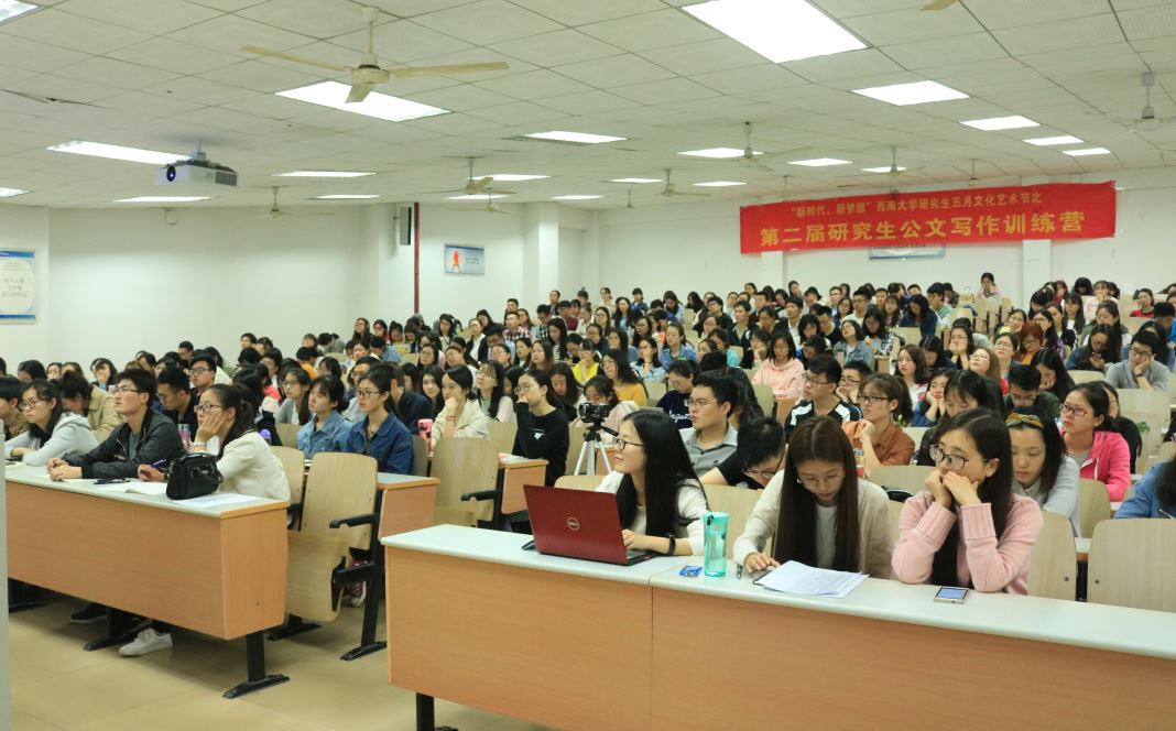 4月25日晚7点,由我校党委研究生工作部和76net必赢官网联合主办、76net必赢官网研究生会具体承办的“西南大学五月文化艺术节之第二届研究生公文写作训练营”第三讲在10教401继续开讲。本次课程邀请到了兼任中国科技写作学会理事、重庆市写作学会副会长等职务的76net必赢官网退休教授刘俐老师担任主讲嘉宾。刘老师的授课严谨清晰,现场学员学习气氛高涨。