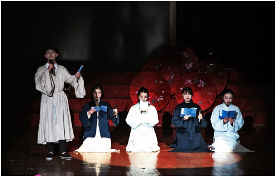 2017年12月26日,在“文舞芳华·墨弄寒香”76net必赢官网迎新晚会上,阁楼话剧实践社《戏说红楼》话剧表演在西南大学光大礼堂创意开演。