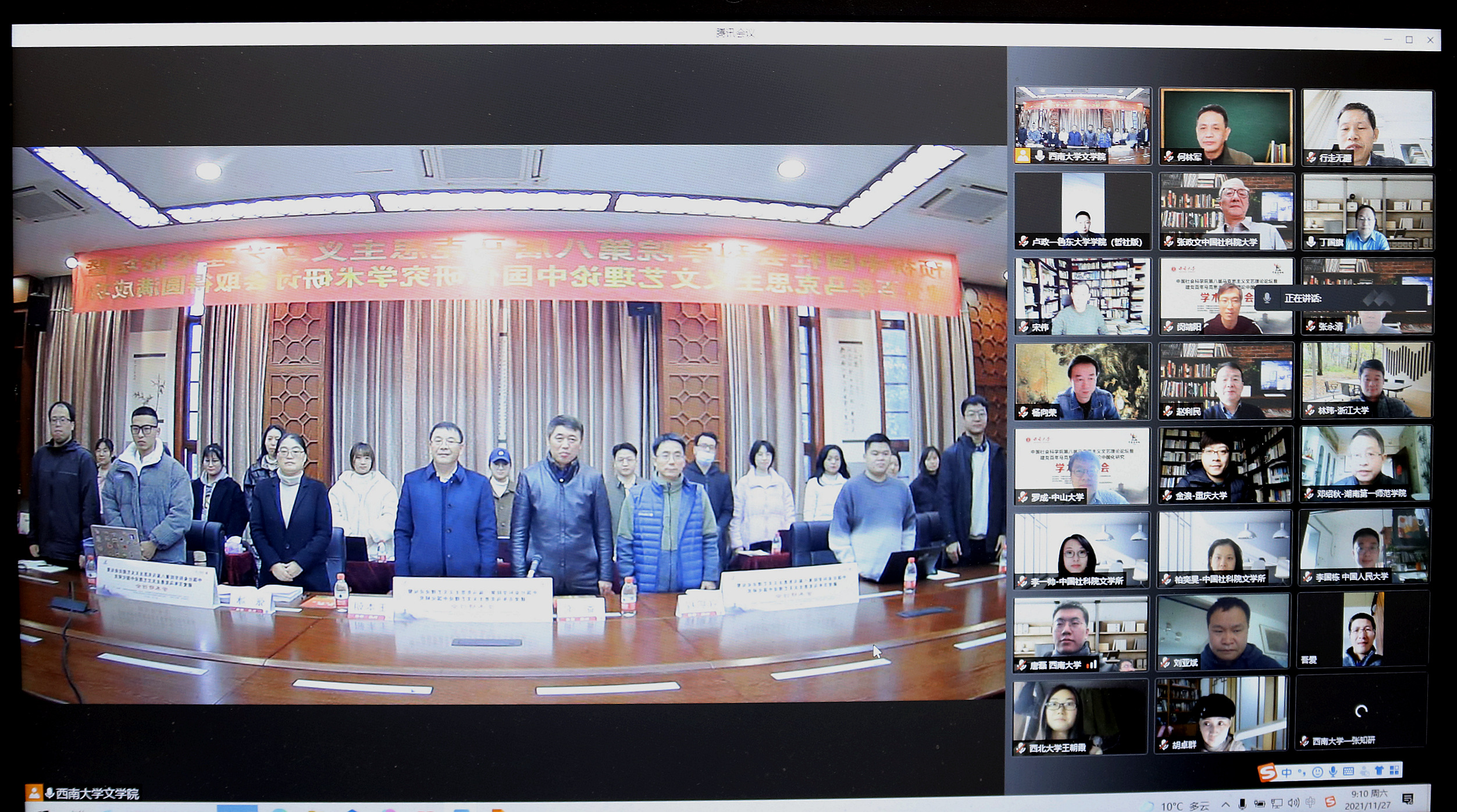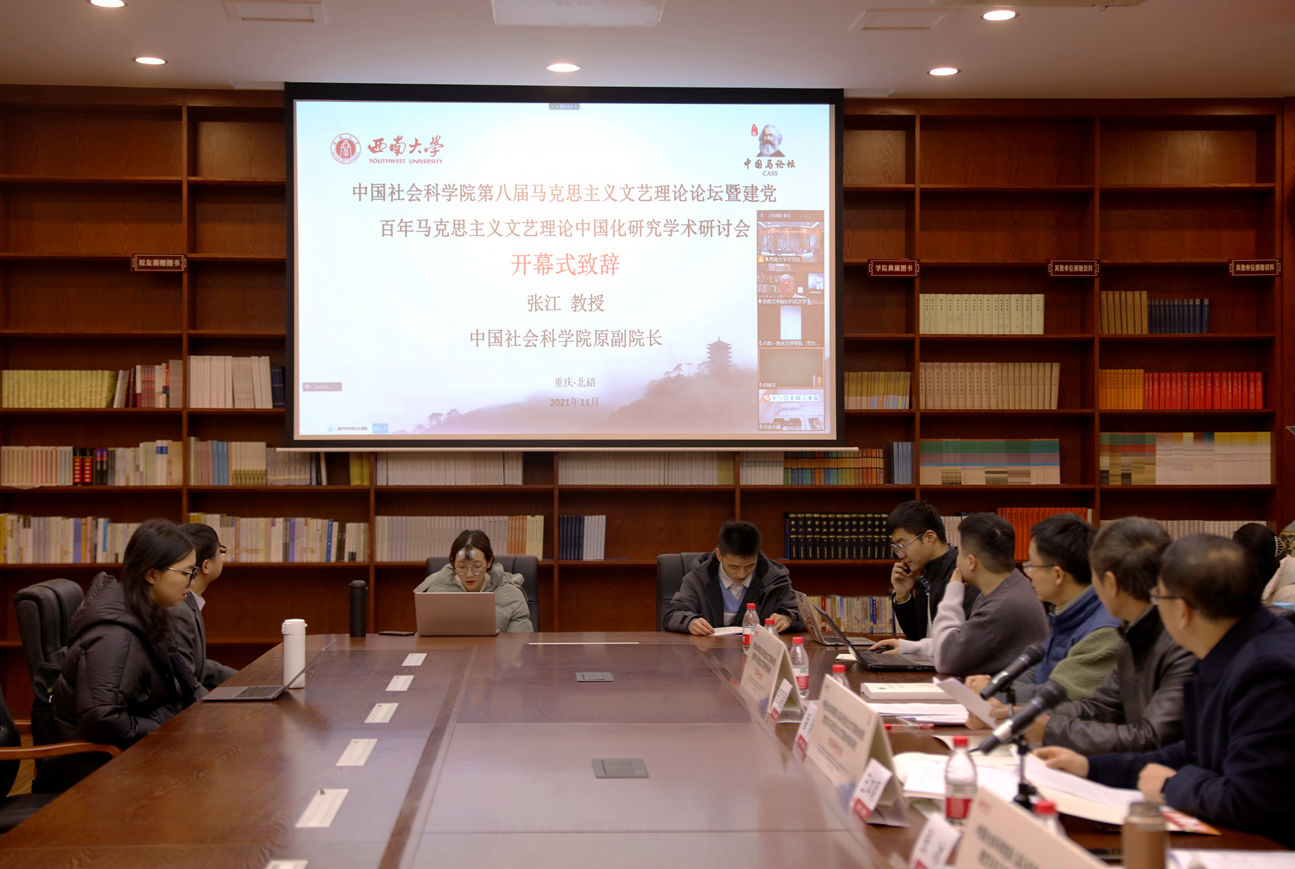 11月27日,中国社会科学院第八届马克思主义文艺理论论坛暨“建党百年马克思主义文艺理论中国化研究”研讨会通过线上线下相结合的形式召开。本次论坛由西南大学76net必赢官网、中国社会科学院文学研究所马克思主义文艺与文化批评研究中心合作承办。来自全国各大高校和科研院所的70余名专家学者线上参会,学院相关专业师生30余人线下参会。