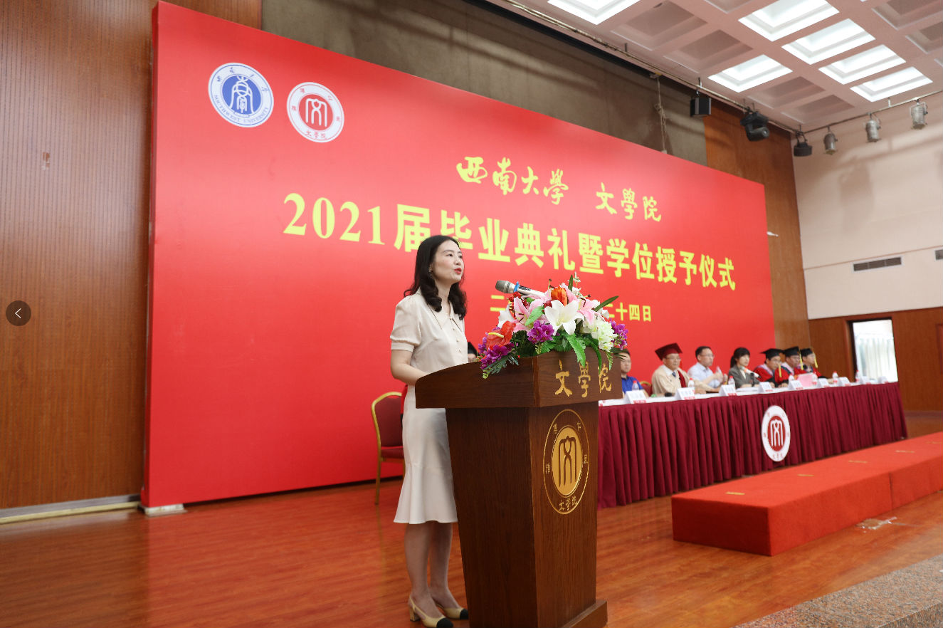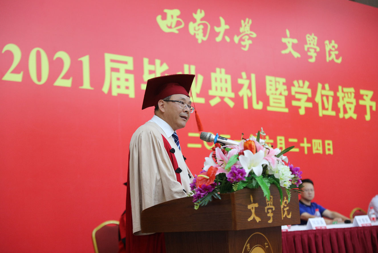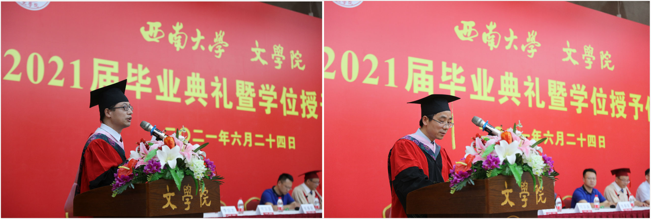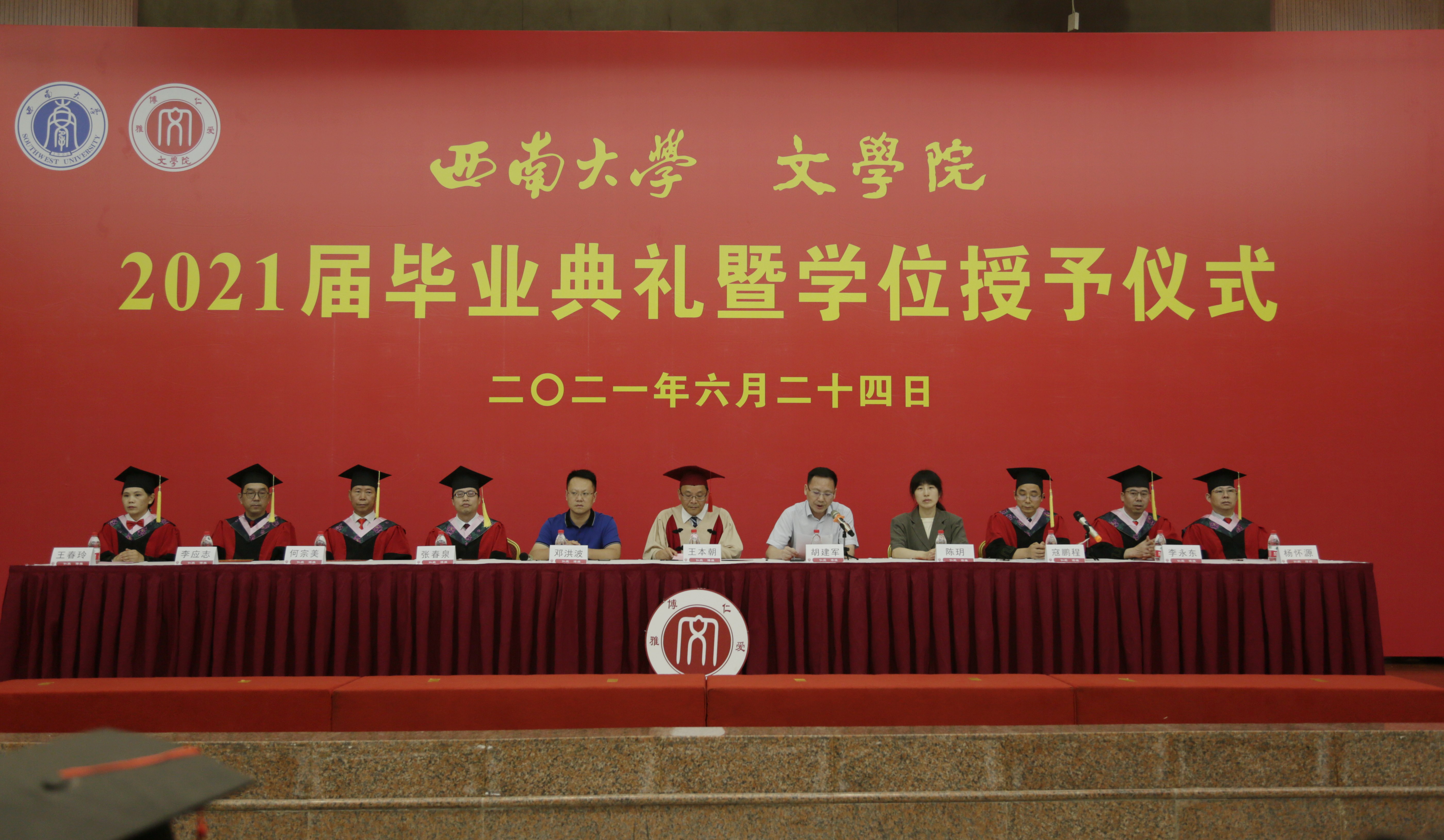西南大学中国语言文学学术委员会主任王本朝教授宣读学位授予决定。随后,院学术委员会主任王本朝教授为博士学位获得者逐一授予学位;院学术委员会委员为硕士学位获得者、学士学位获得者授予学位。