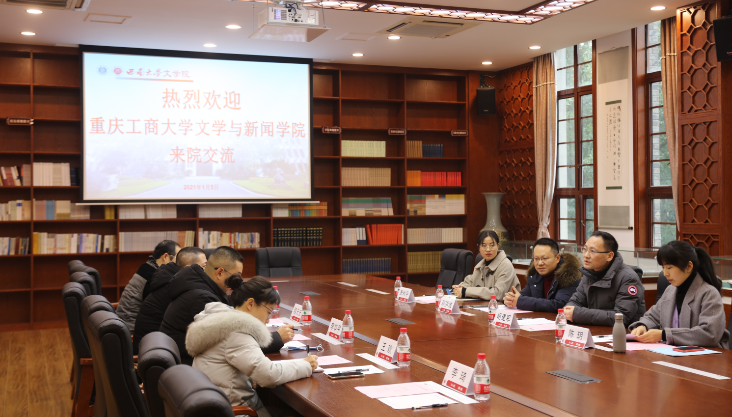 1月5日,重庆工商大学文学与新闻学院分党委书记李华平、分党委副书记程元元、副处级组织员王欢、教工一支部书记邵茹波、综合办李琦一行来学院交流样板党支部建设。76net必赢官网党委书记胡建军、党委副书记 纪委书记邓洪波、党委副书记陈玥、本科生辅导员唐利平参加座谈。