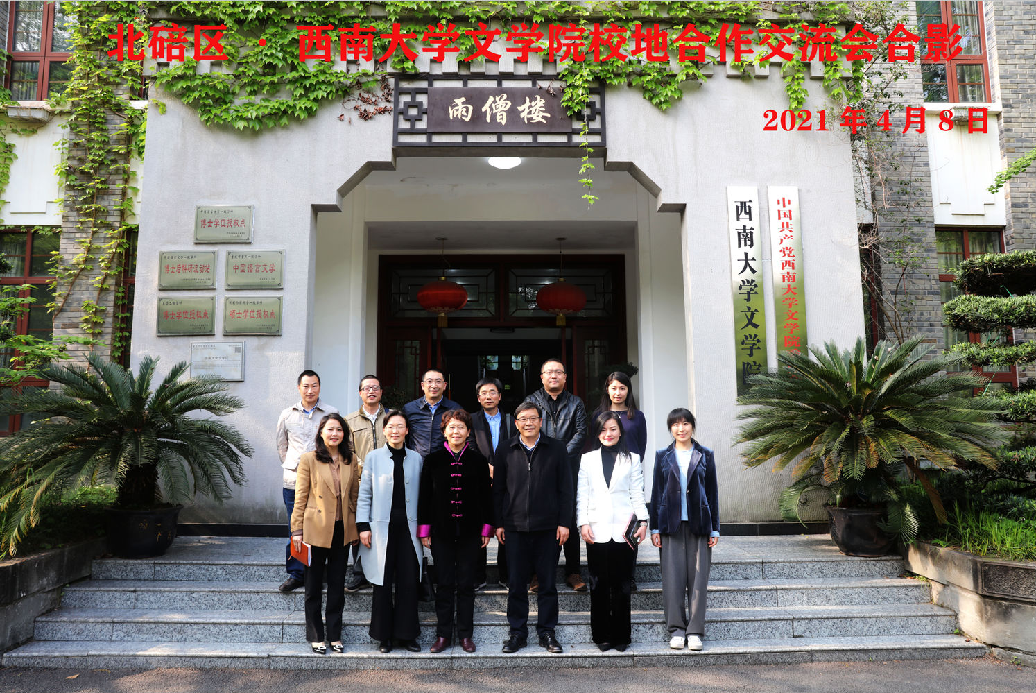 4月8日,中共北碚区委常委、宣传部部长江绪容率队来院交流校地合作,76net必赢官网院长王本朝与江绪容一行交流座谈。