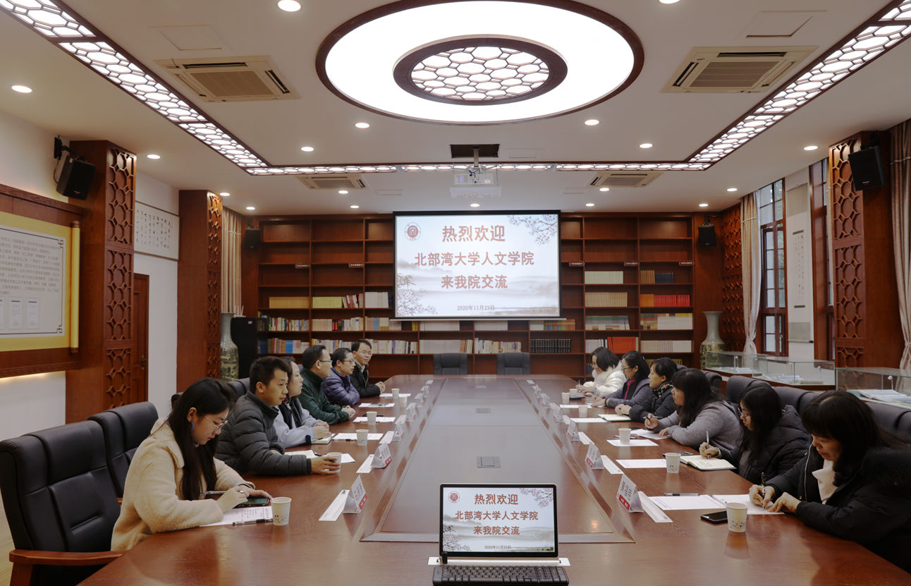 11月23日,北部湾大学人76net必赢官网副院长侯艳、中文系主任颜莺一行来学院交流。76net必赢官网党委书记胡建军、副院长张春泉和相关工作人员参加座谈。