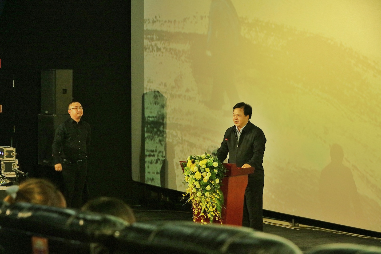 张洪斌副部长在致辞中提出,七年前组建重庆电影集团是为重庆电影的发展点燃梦想,今天在《白云•苍狗》的首映式上,就看到了重庆电影正在逐梦启航。西南大学的一批青年电影人正在为重庆电影事业、重庆文艺事业的发展,贡献自己的青春热血和智慧。张洪斌副部长强调,对一部电影高度的肯定,不是看投入,而是看情怀;衡量一部电影的热度,则是展现了新时代人们对艺术的理解和执着。类似《白云•苍狗》这样投资不高,但品质很高的电影将不断涌现,未来电影的参天大树一定会在青年一代电影人手中实现。同时,张洪斌副部长宣布影片《白云•苍狗》重庆首映正式开始,预祝影片斩获更多大奖,收获广泛赞誉,叫好又叫座。