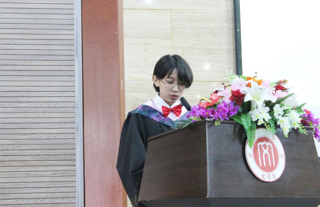 金田同学作为学生代表在发言中向学校和学院领导老师提供的良好的学习机会和条件表示感谢,分享了自己学习期间的美好回忆。