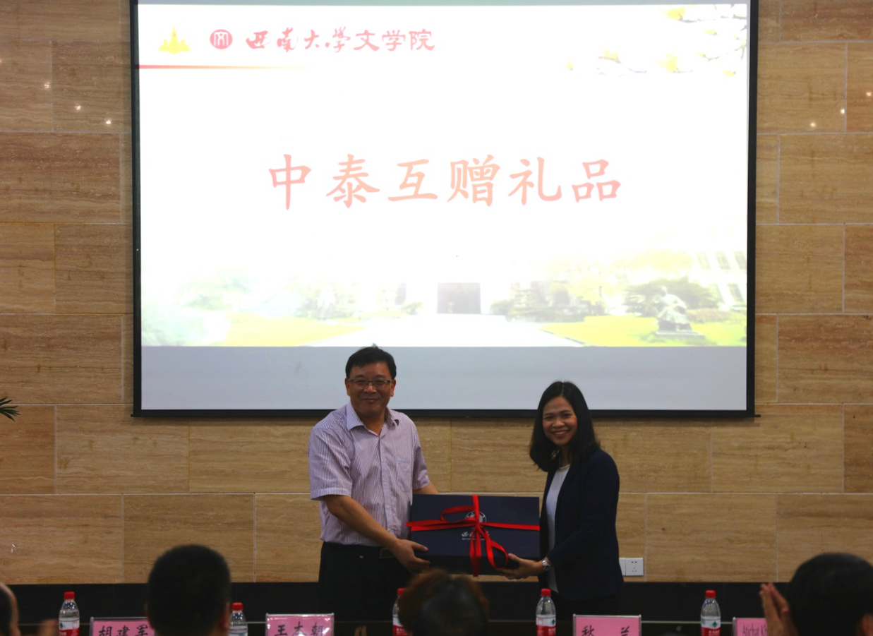随后,王本朝院长和秋兰主任代表两院互赠纪念礼物。