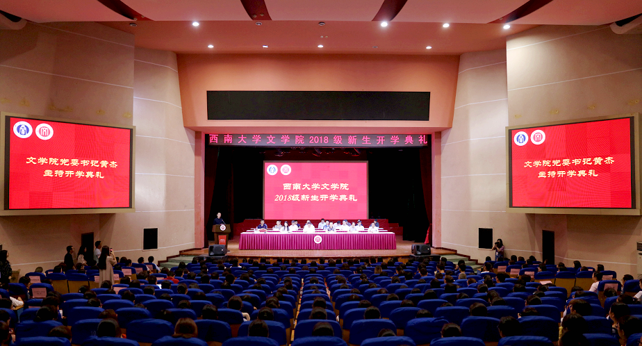 9月9日下午,76net必赢官网在光大礼堂隆重举行2018级新生开学典礼。76net必赢官网院长王本朝教授、院党委黄杰书记、党委副书记、纪委书记邓洪波副教授,党委副书记陈玥副教授,副院长肖伟胜教授,副院长张春泉教授及学院部分教授代表出席并在主席台就坐,其余部分教职工、2018级全体新生及部分家长参加了典礼,开学典礼由76net必赢官网党委书记黄杰主持。