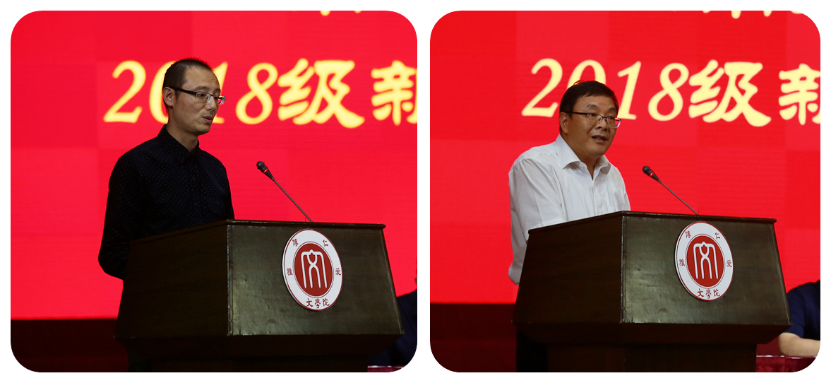 新生代表2018级本科生孙澜僖同学在典礼上发言,孙澜僖同学倡导大家把握机遇,珍惜时光;继承优秀的文学传统,探寻更为深奥的文学境界,以崭新的面貌和振奋的精神迎接新的挑战。