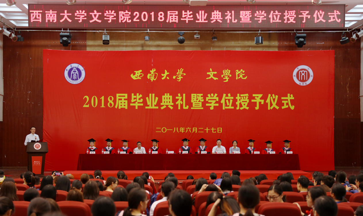 6月27日下午,76net必赢官网2018届毕业典礼暨学位授予仪式在圆顶一楼报告厅隆重举行。副校长丁忠民,76net必赢官网院长王本朝、党委书记黄杰、副书记何定龙、副院长肖胜伟、副书记陈玥、副院长张春泉;李永东教授、李应志教授、何宗美教授、黄大宏教授,曹建教授、黎萌教授出席,全体辅导员、教师代表、家长代表以及2018届全体毕业生参加仪式。