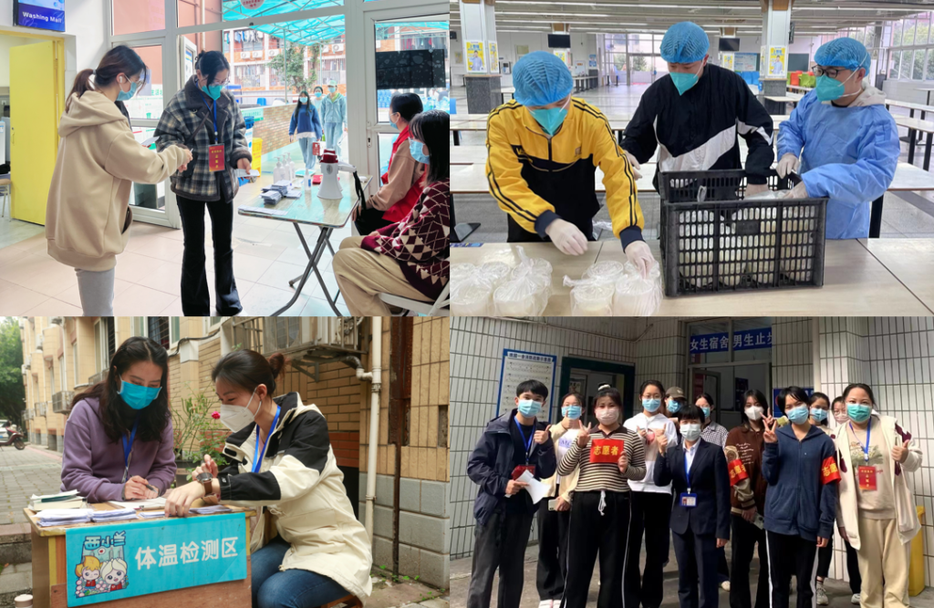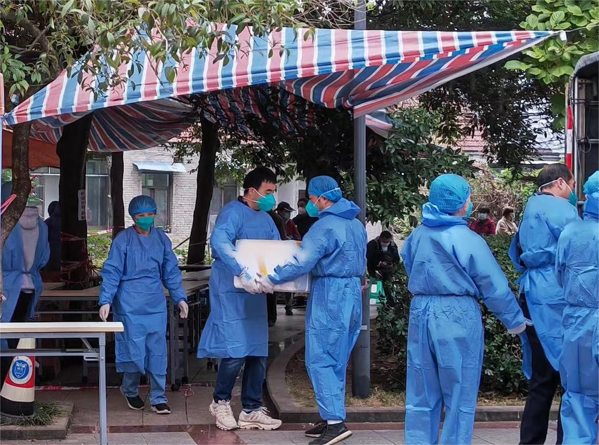 11月20日,天生路2号橘园有关宿舍被确定为疫情高风险区以来,学院疫情防控工作队伍听从指挥,深入疫情高风险区,负责高风险区橘园2舍、3舍的疫情防控工作,胡建军积极参加高风险区第二运动场党员志愿服务工作,邓洪波、王永强参与负责橘园片区核酸检测、送餐安排等相关工作,陈玥、凌飞积极参与到高风险区楼栋管理工作。当负责的高风险区学生核酸检测发现1例结果异常时,学院疫情防控工作队伍立刻召开紧急会议,启动预案,部署工作,开展流调,查询轨迹,组织转运隔离,做好隔离人员心理疏导工作,第一时间安排运送隔离所需生活物资。在疫情面前,76net必赢官网疫情防控工作队伍毫不迟疑、毫不推诿,以迅速到位、决不缺位、相互补位的态度奋战在抗疫第一线。