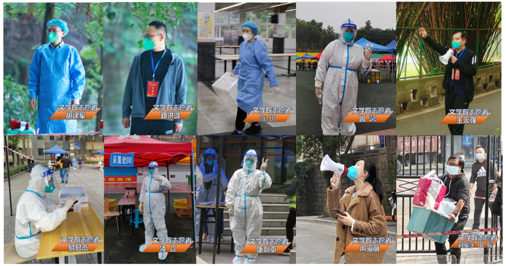 面对疫情的突然来袭,76net必赢官网胡建军、邓洪波、陈玥、曾馨、王永强、凌飞、唐利平、冉海萌、易君杰、刘振宇等闻令即行,积极投入疫情防控工作;王本朝、寇鹏程、张春泉等每日电话联系学院疫情防控工作情况,关心师生生活及后勤物资保障需求,积极部署实施线上教学科研等学院工作。他们认清形势,统一思想,坚定不移的贯彻执行学校疫情防控工作整体部署及要求,坚守在各自疫情防控“第一线”。顾不上吃饭,来不及休息,白天,他们下沉园区,进驻楼栋,组织学生有序取餐,进行全员核酸检测,做好每日值班值守;夜晚,他们研究部署新的防控任务,动态更新师生信息台账和重点人员台账,督促师生学生每日健康打卡,将常态化疫情防控工作落实落细。他们舍小家、为大家,从父亲、母亲、丈夫、妻子的角色迅速转换成“天使白”“志愿红”“抗疫蓝”,恪尽职守,担当奉献。