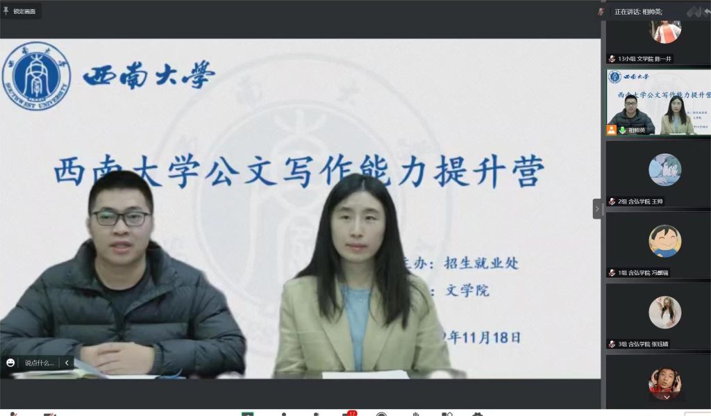 因为疫情,学院线下教学科研等日常工作被迫按下了“暂停键”,但教学不能停,人才培养不能停,事业发展不能停。76net必赢官网教师在抗击疫情的同时,做好本职工作,保证教学质量,陈贤明、凌飞、杜云婷老师在做好疫情防控工作的同时,坚守在线上教学科研岗位,积极协调线上教学科研等工作,学院189门本科生课程、54门研究生课程均在线上有序开展。学院承办的首届中小学影视教育高峰论坛、中国语言学会历史语言学分会第二届学术研讨会、重庆市市级骨干教师培养班等工作在线上顺利进行。为丰富居寝生活,提升学生综合素质,76net必赢官网线上开展了学生公文写作能力提升营、“笔绘霓裳,‘艺’展风华”班级风采大赛、“信通心意,成长共行”信件交流活动、“笔书正道,墨砺今朝”汉字书写大赛等活动。同时参加首届“通文达议”全国高校中文专业学生会交流论坛,做经验分享,展示了76net必赢官网学子的良好风采。