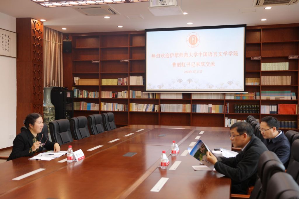 3月15日,伊犁师范大学中国语言文学学院党委书记曹丽虹来学院考察交流。76net必赢官网院长王本朝、党委书记胡建军参加座谈会。