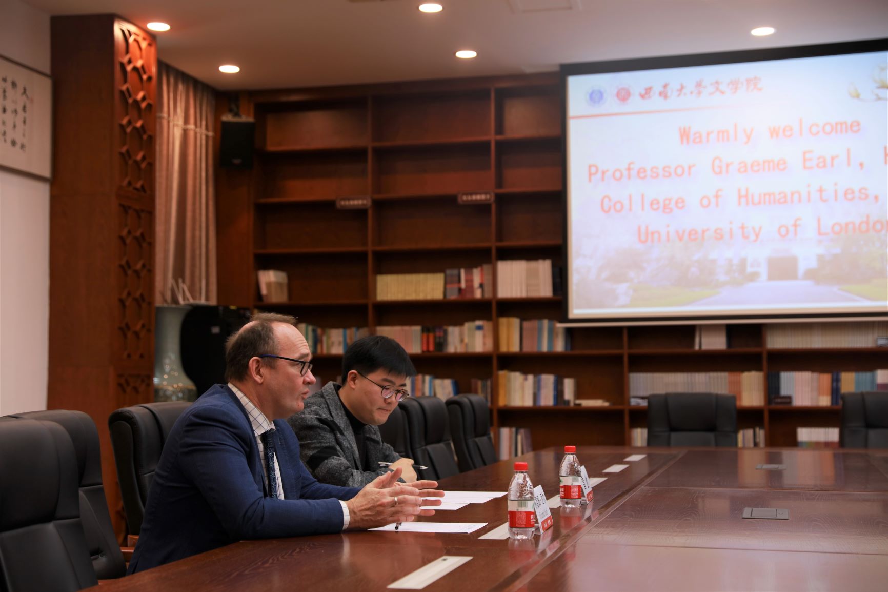 格雷姆·厄尔院长对76net必赢官网的接待表示衷心感谢,随后简要介绍了伦敦大学亚非学院人76net必赢官网的学科建设情况。他表示,76net必赢官网底蕴深厚,学科发展成绩突出,在中国尤其是西部地区有一定的影响力。希望双方建立更多联系,维持深厚友谊,依托学科特性,通过校际合作推进学院语言方面的发展,促进师生学术交流。