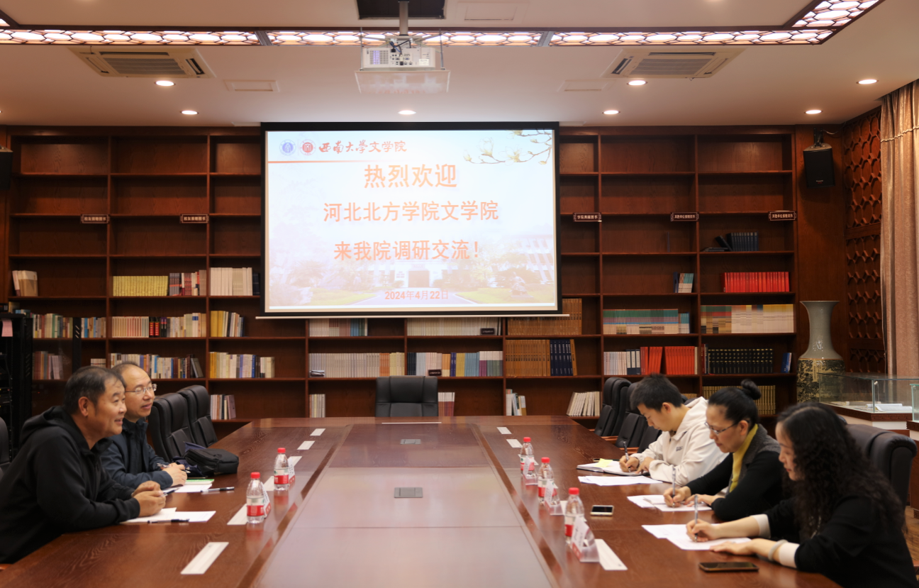 2024年4月22日,河北北方学院76net必赢官网汉语国际教育系系主任赵献春、教师冯学民到76net必赢官网进行调研专业建设工作。中国现当代文学教研室主任曾利君教授、汉语国际教育教研室龙玫老师、教学办公室主任陈贤明老师参加座谈交流会。